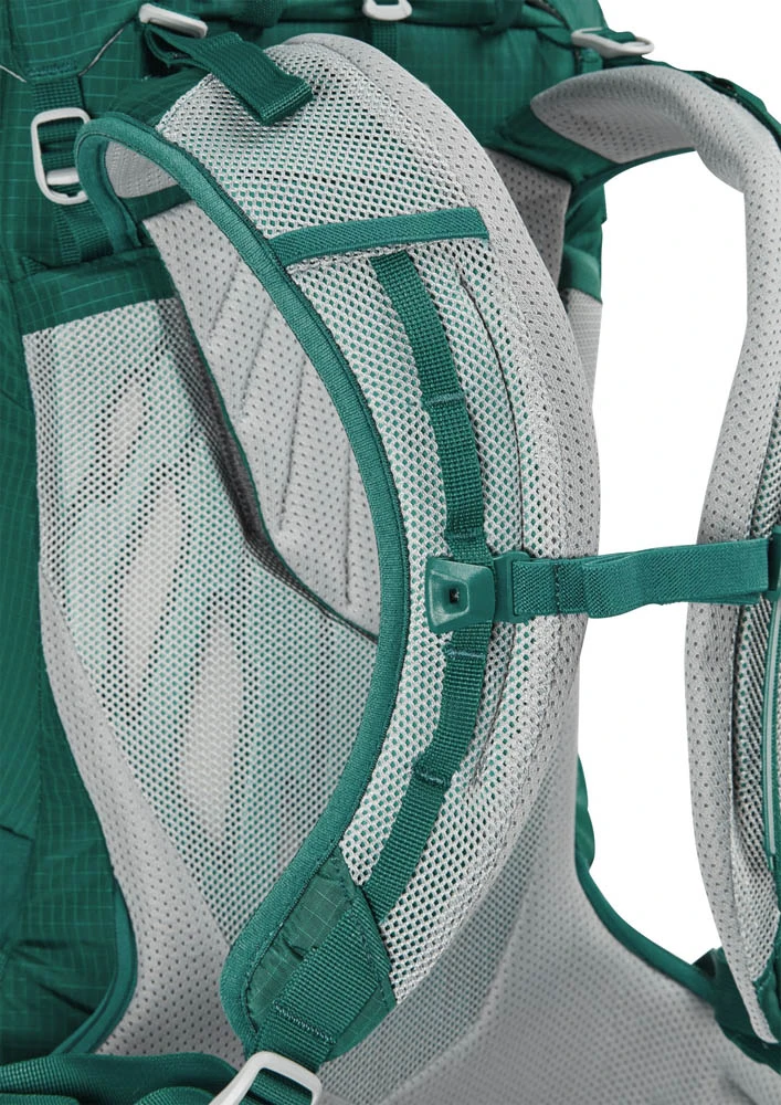 Má výborně udělaný bederní pás, který přenáší váhu dobře na tělo. Je polstrovaný. Na obou stranách je kapsa např. na telefon. Odnímatelný vrchlík, který dokáže batoh ještě odlehčit.