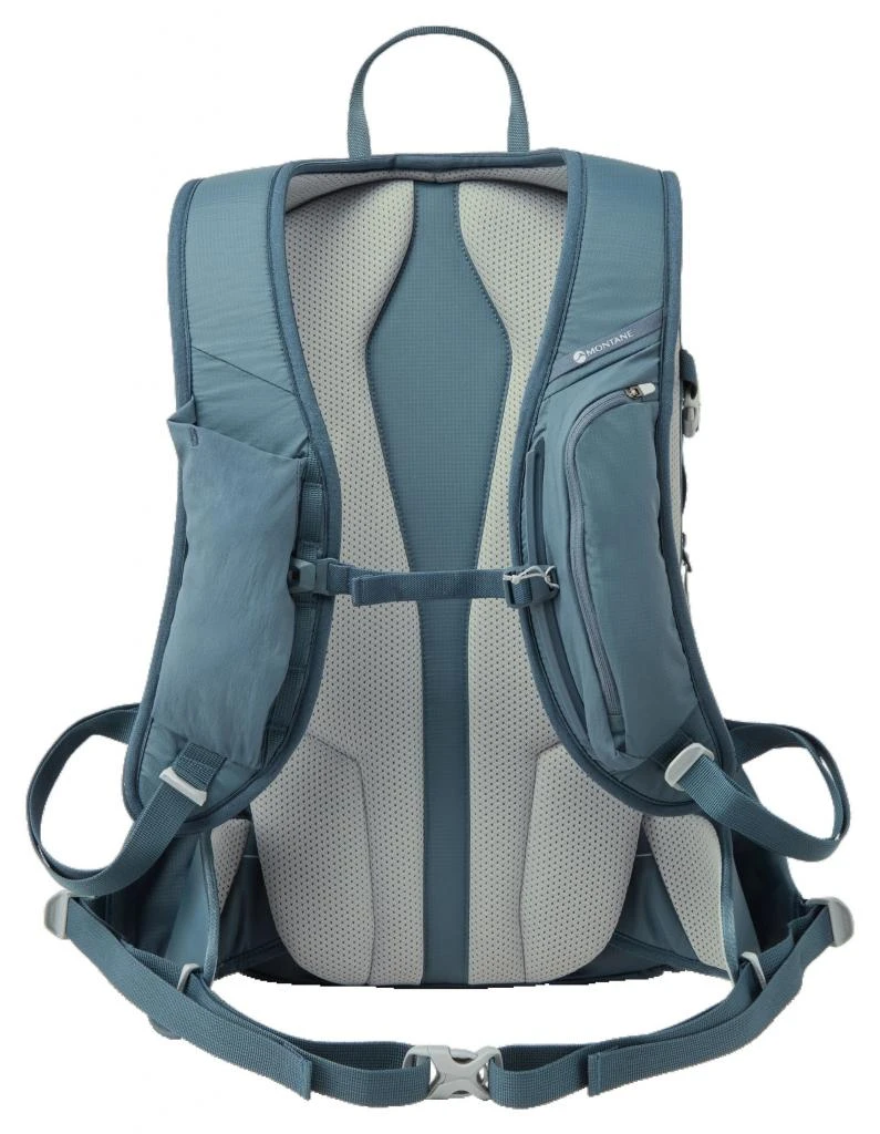 Je vyroben z odolného materiálu Raptor Grid a Flex. Zádový systém batohu Montane Orbiton 25-28 je Contact Air Mesh Plus. Uprostřed je tunel pro odvětrávání.