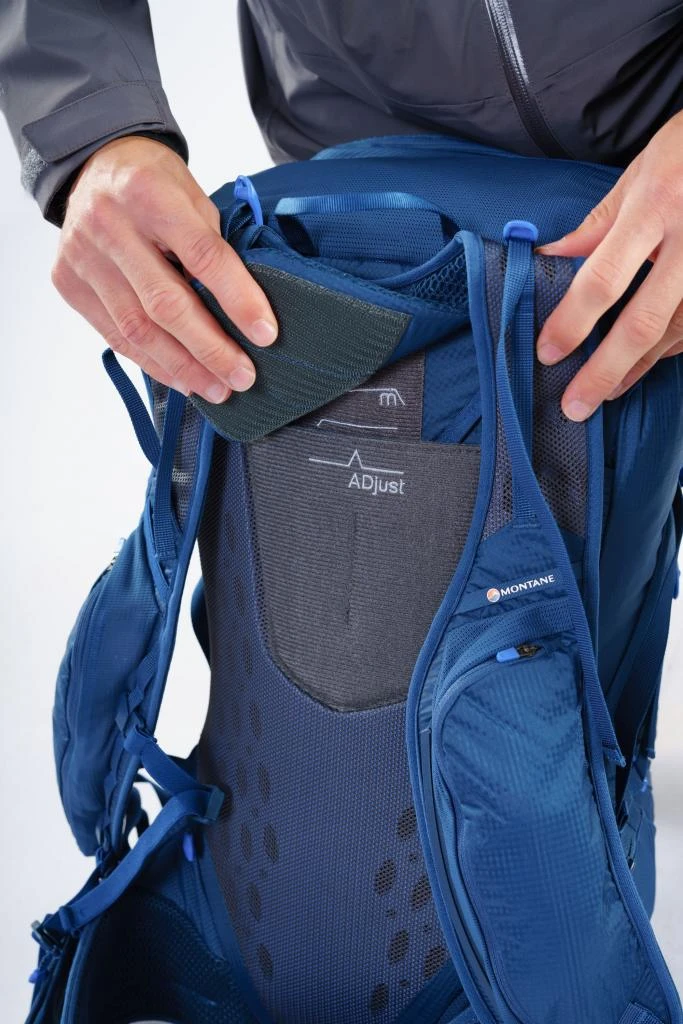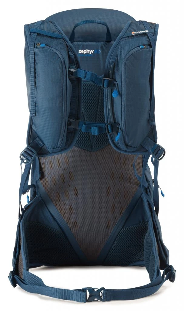 Zádový systém turistického batohu Montane Trailblazer 30 je Zephyr AD. Ta je z podložky s výseky pro zvýšení prodyšnosti. Ta je potažena síťovinou Contact Open Mesh (rychleschnoucí a prodyšná síťovina).
