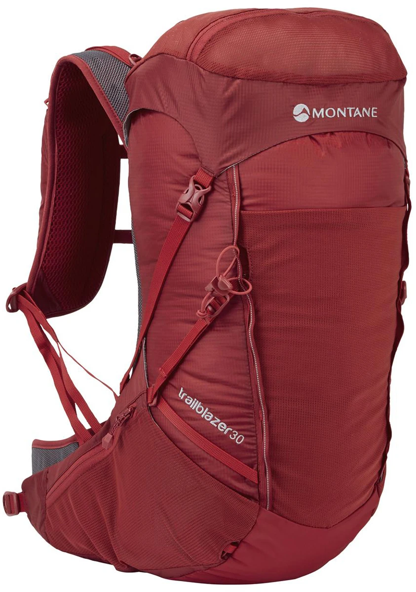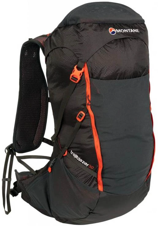 Turistický batoh Montane Trailblazer 30: má objem 30 litrů a váhu 800 g. Je vyroben především s ohledem na nízkou váhu. Má však dobrý zádový systém. Je vyroben z odolného materiálu Raptor Cross Lite 70, který má UTS (polyuretan komposit) zátěr, který zvyšuje její voděodolnost i odolnost proti poškození. Spodek je z ještě odolnější tkaniny Raptor Ressistanse 210.