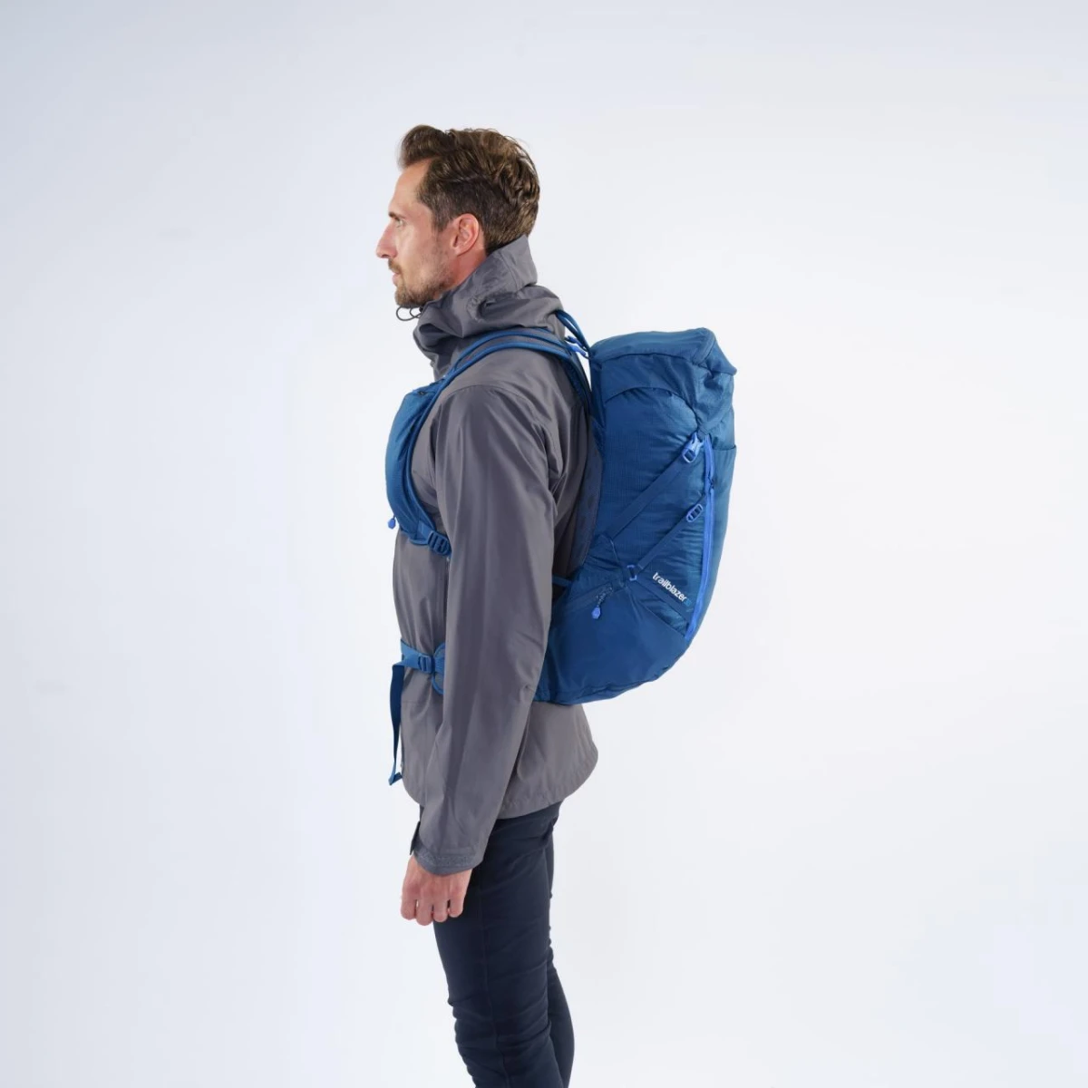 Ve vrchlíku batohu Montane Trailblazer 30 je síťovaná kapsa na zip a pod víkem bezpečnostní kapsa na doklady s karabinkou na klíče. Po stranách jsou kompresní popruhy. Možnost uchycení trekových hůlek nebo cepínu. Uvnitř hlavní komory je kapsa pro hydro vak.