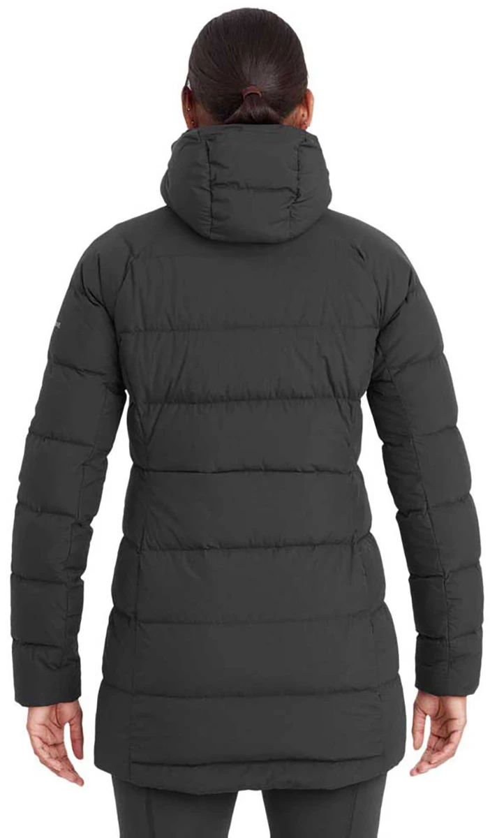 Montane Tundra Hoodie Womens – dámský péřový kabát vyrobený z vysoce odolného recyklovaného ripstopového nylonu a plněn recyklovaným peřím s plnivostí 700+, kterého je v kabátu 220 g. Peří je impregnované a má DWR úpravu proti vodě, proto mnohem méně saje vlhkost a i lépe schne. Proto ani v našich zimách nebudete mít problém.