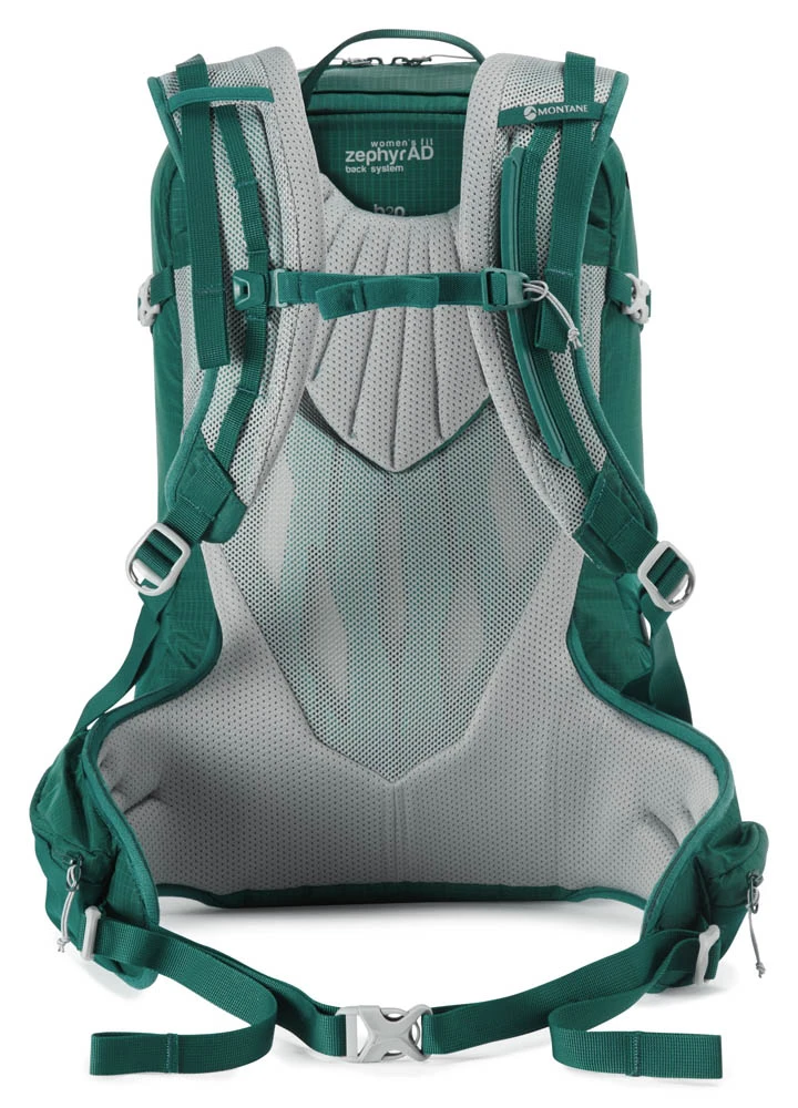 Zádový systém ZephyrAD má nastavitelnou velikost, je prodyšný, odvětrává a hlavně dobře sedí na zádech. Je tvořený pěnou s velkými výseky a potažený síťkou, díky tomu záda nejsou v plném kontaktu s batohem a tričko vám může schnout.