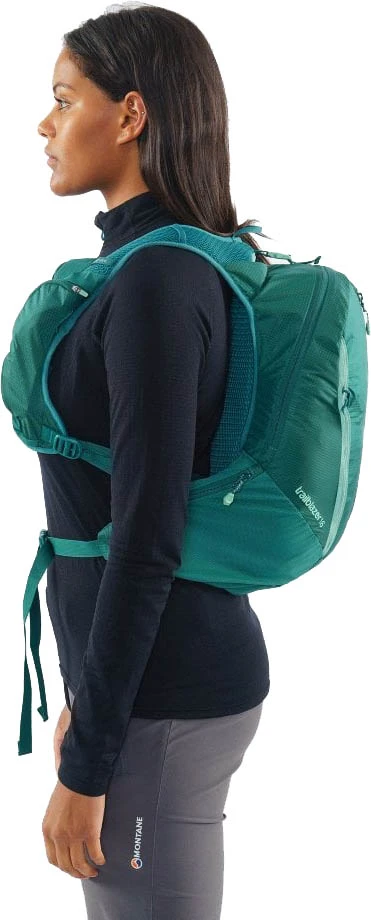 Zádový systém ultralite batohu Montane Womens Trailblazer 16 je optimalizovaný pro ženy a menší postavy, je vyrobený z příjemného materiálu Contact Open Mesh (rychleschnoucí a prodyšná síťovina).