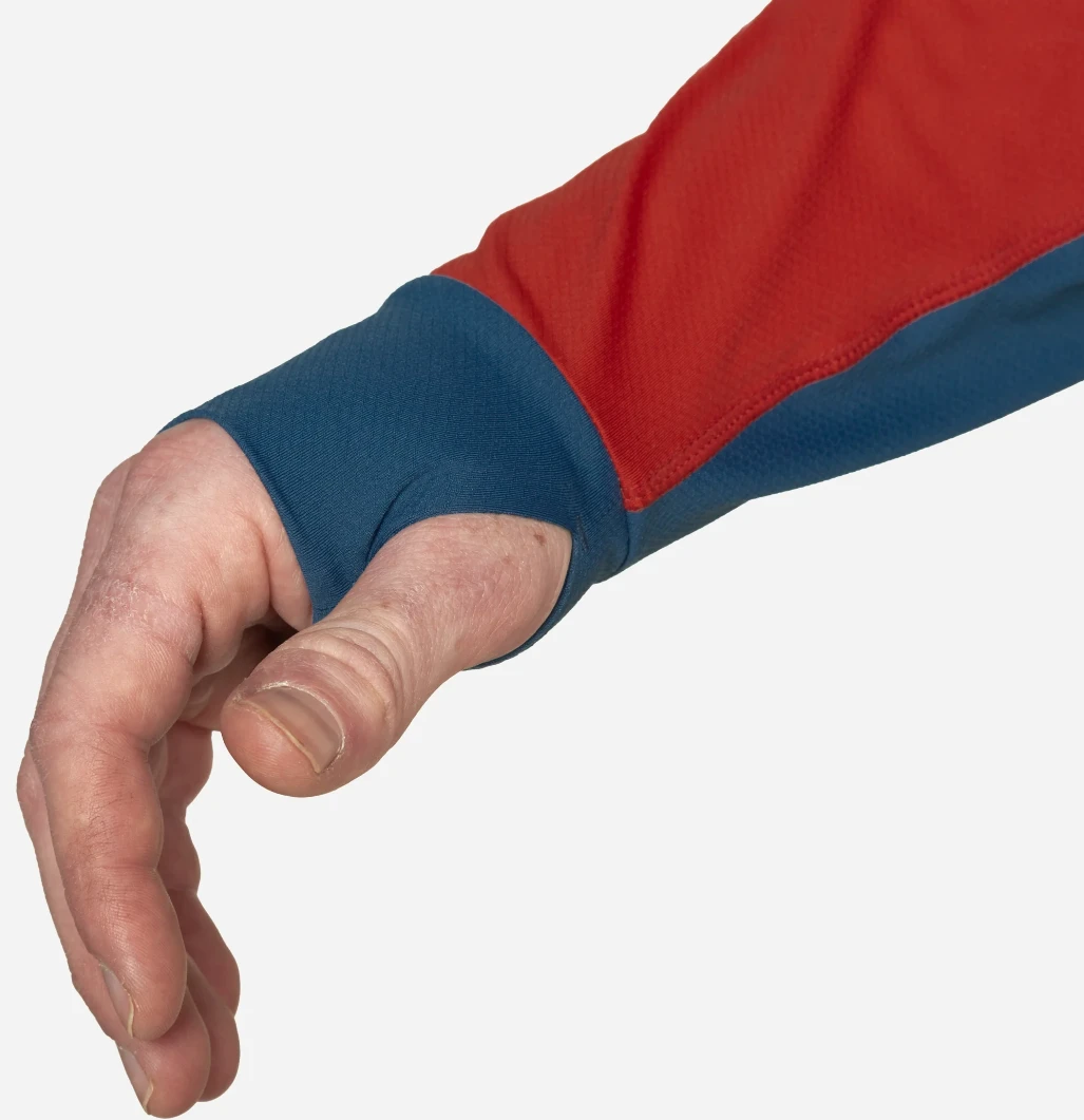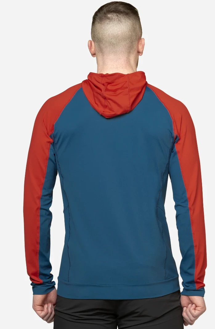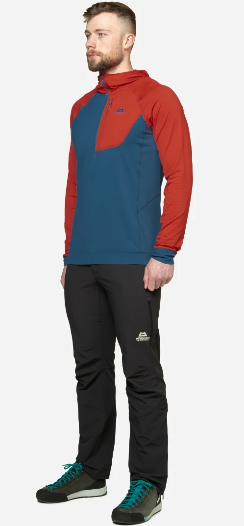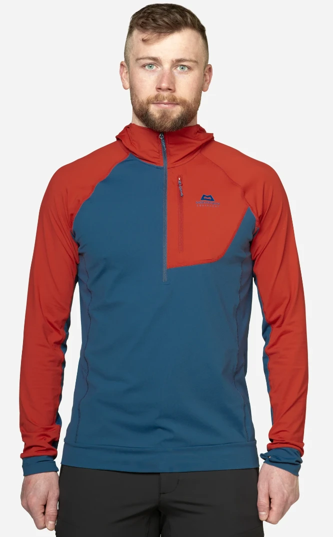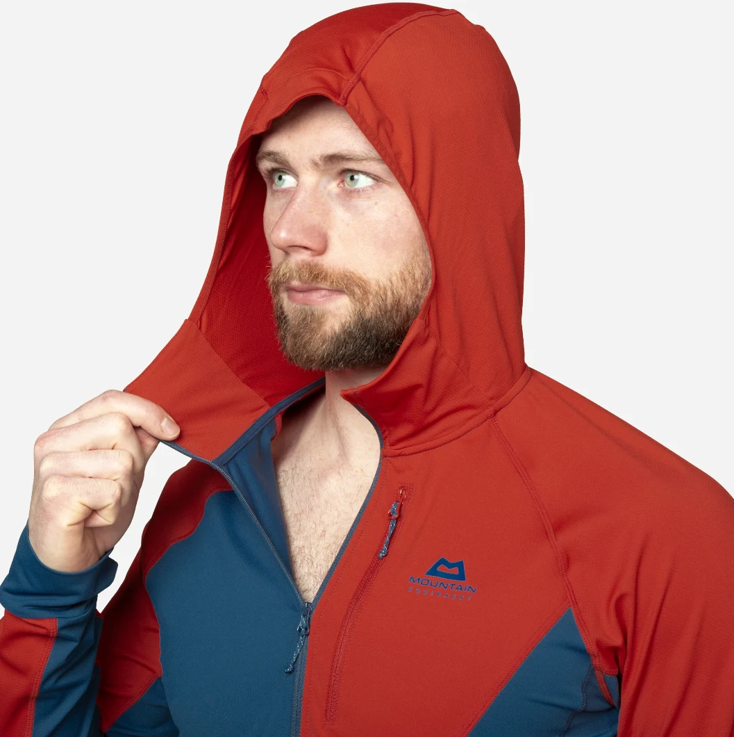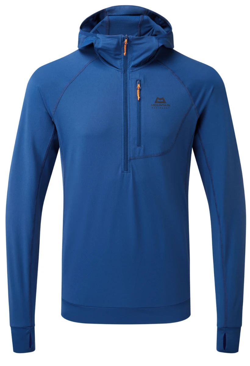Mountain Equipment Aiguille Hooded Top Mens: tenké a elastické pánské triko s dlouhým rukávem a kapucí. Pánské triko můžete mít na sobě celý den. Je vyrobeno z odolné a žerzejové tkaniny, která chrání před sluncem a větrem. Úzký, atletický střih je ideální pro lezení nebo bouldering. Kapuce a poutka na palec vám poskytnou dostatečnou ochranu před mrazivým větrem pod skálou nebo na štandech.