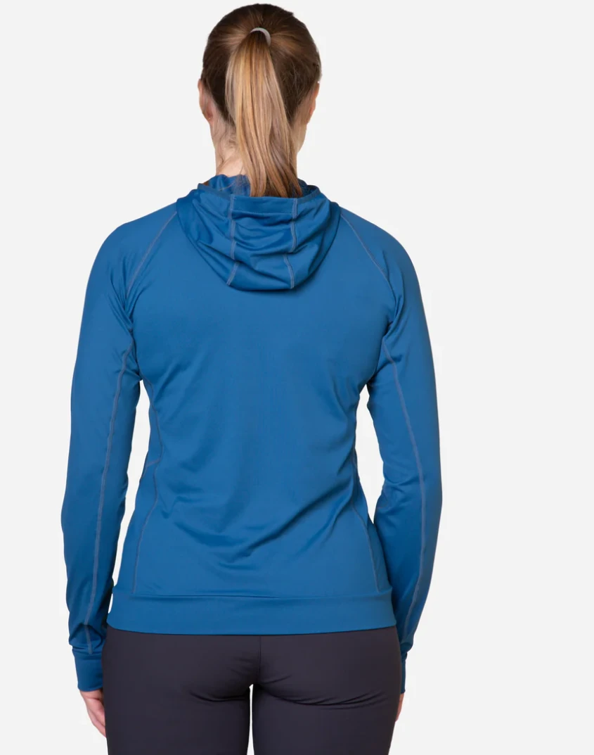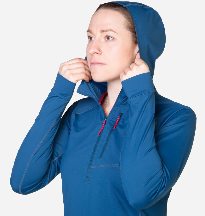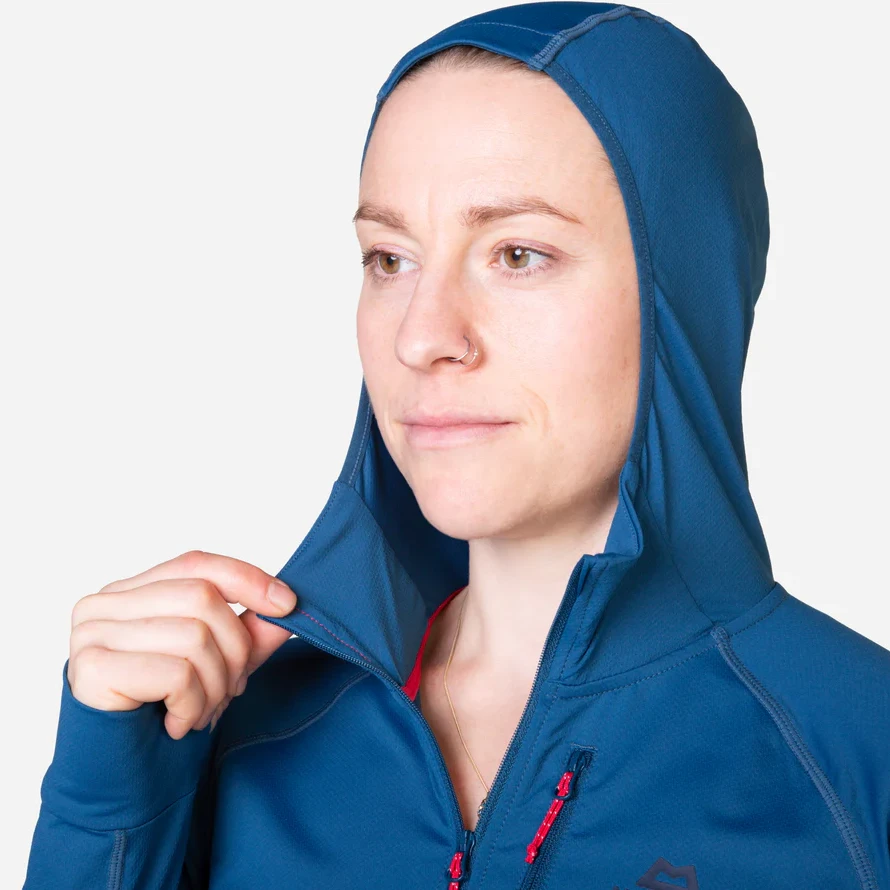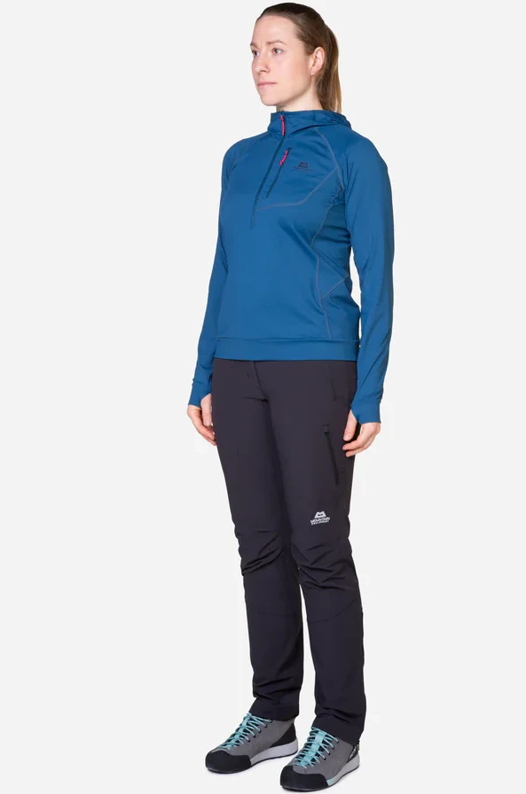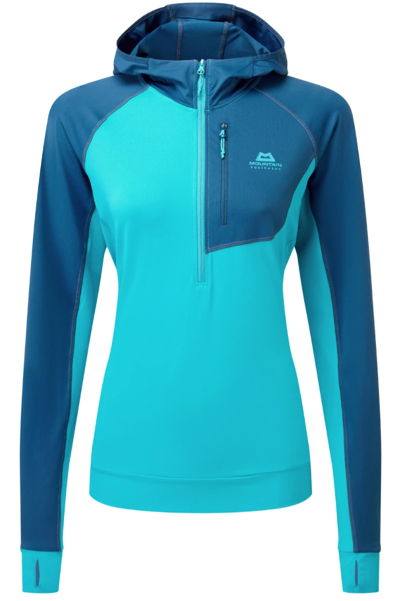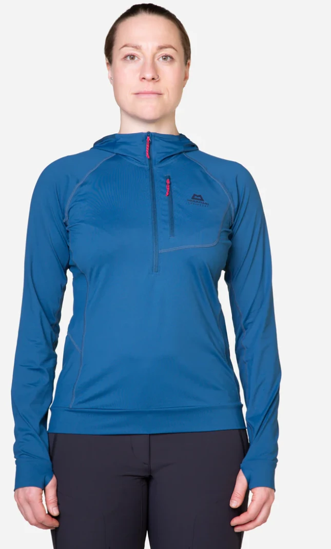 Mountain Equipment Aiguille Hooded Top Women’s : tenké a elastické triko s dlouhým rukávem a kapucí, které vás ochrání před sluncem a větrem v exponovaných skalních stěnách. Dámské triko s dlouhým rukávem můžete mít na sobě celý den. Tričko je vyrobeno z odolné a strečové žerzejové tkaniny. Úzky, atletický střih je ideální na lezení nebo bouldering. Kapuce a poutka na palec vám poskytnou dodatečnou ochranu před mrazivým větrem pod skálou nebo na štandech.