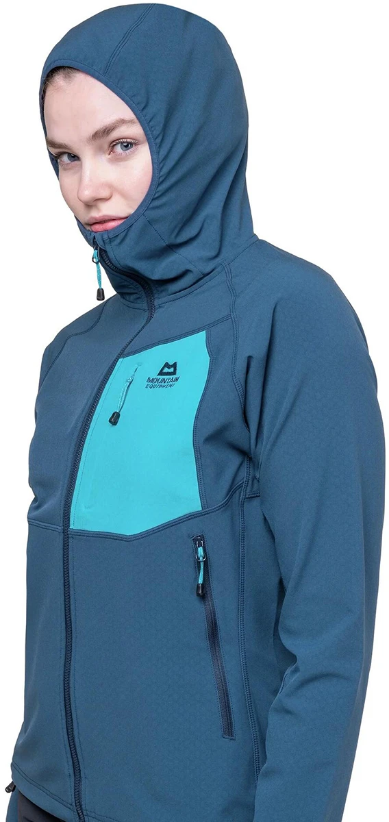 Mountain Equipment Arrow Hooded Jacket Womens: je lehká, komfortní a všestranná dámská softshellová bunda s kapucí vhodná na lezení, alpinismus a vysokohorskou turistiku. Je ideální pro náročné dny na horách.