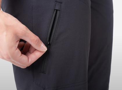 Na kalhotách CHAMOIS WOMEN’S PANT najdeš pět kapes na zip – dvě přední, jednu zadní a dvě na stehnech. Dále také nastavitelný integrovaný opasek, a vnitřní stranu podšitou microfleecem, který poskytuje větší komfort, a zároveň zachytává stékající pot ze zad. Výsledkem je na dotek velmi příjemný materiál garantující prvotřídní ochranu. Postranní kapsy mají zevnitř síťovinu, takže se dají využít i jako větrací otvory.
