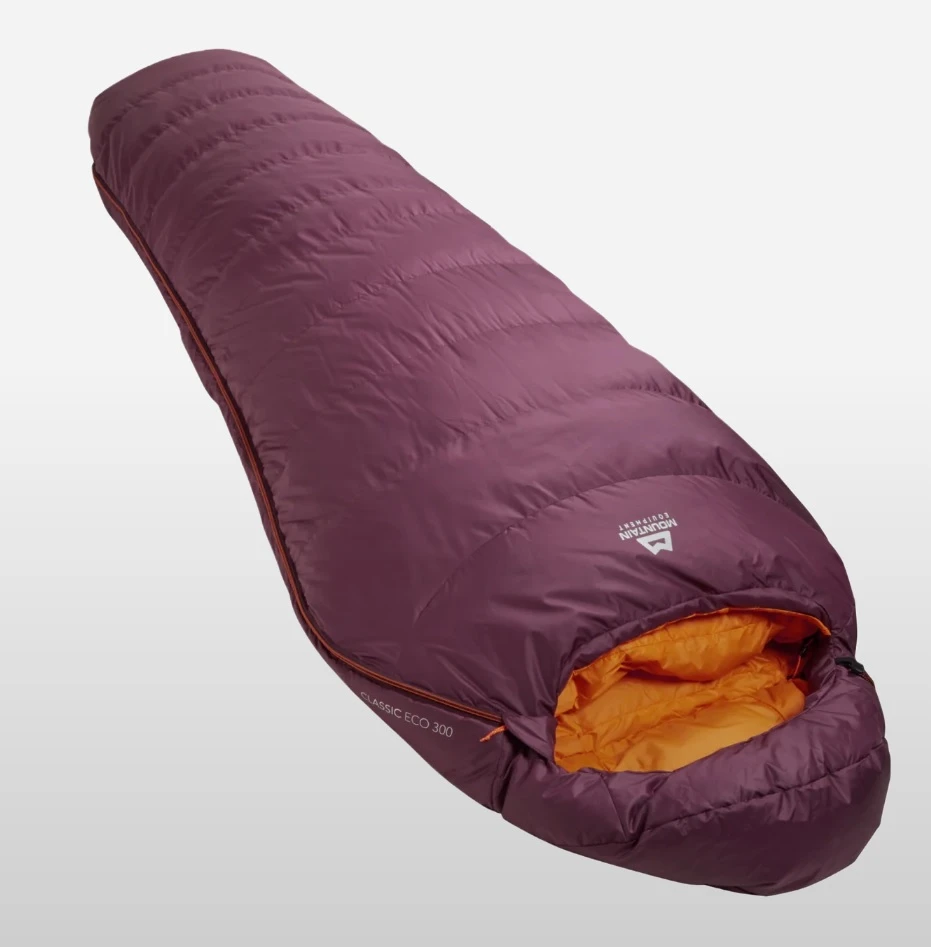 Mountain Equipment Classic Eco 300 Women's: Dámský péřový ekologický spací pytel, vhodný pro kempovaní v přírodě na jaře, a v létě. Spacák je velmi pohodlný, prostorný, a navíc zodpovědný. Veškeré použité materiály, jsou 100% recyklované. Tím je myšlený všechen povrchový materiál, ale také péřová výplň. Na rozdíl od klasického modelu má tento dámský speciální zkrácený střih po ženy a osoby menší postavy. Díky tomu vám poskytne lepší izolaci v oblasti nohou. Propracovaná konstrukce ve spodní části, vám udrží nohy v teple, a komfortně se vyspíte i v 0 °C.