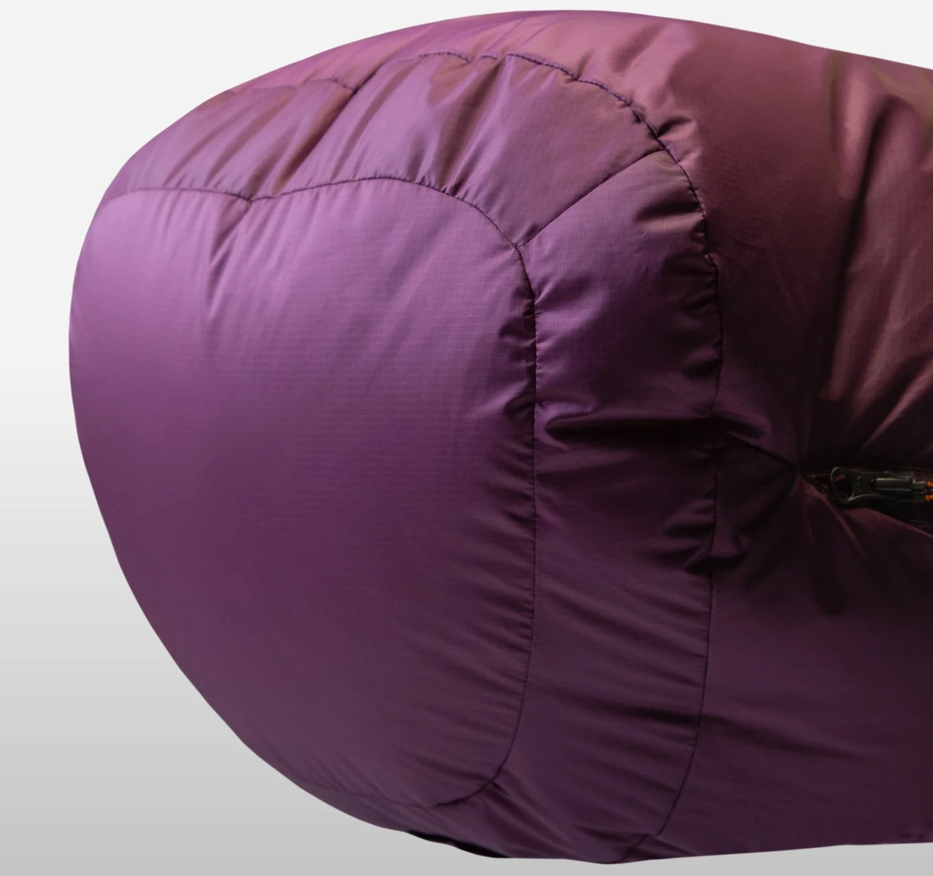 Uvnitř najdete 100% recyklované husí a kachní peří, které splňuje podmínky Down Cycle. Plnivost spacího pytle začíná na 700 cuin, a poměr prachového peří je 90:10. Použité peří pochází z nepotřebných výrobků, které sbírají recyklační společnosti po celé Evropě.