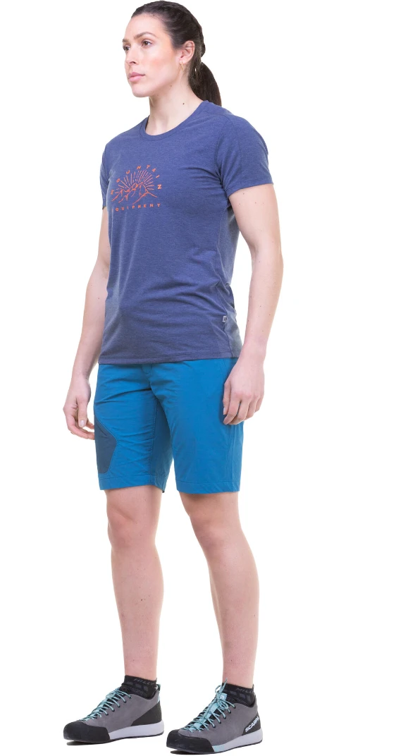 Mountain Equipment Comici Short Womens: lehké, strečové a rychleschnoucí dámské softshellové kraťasy. Jsou ideální na vícedélkové lezení a náročné túry v letních horách.