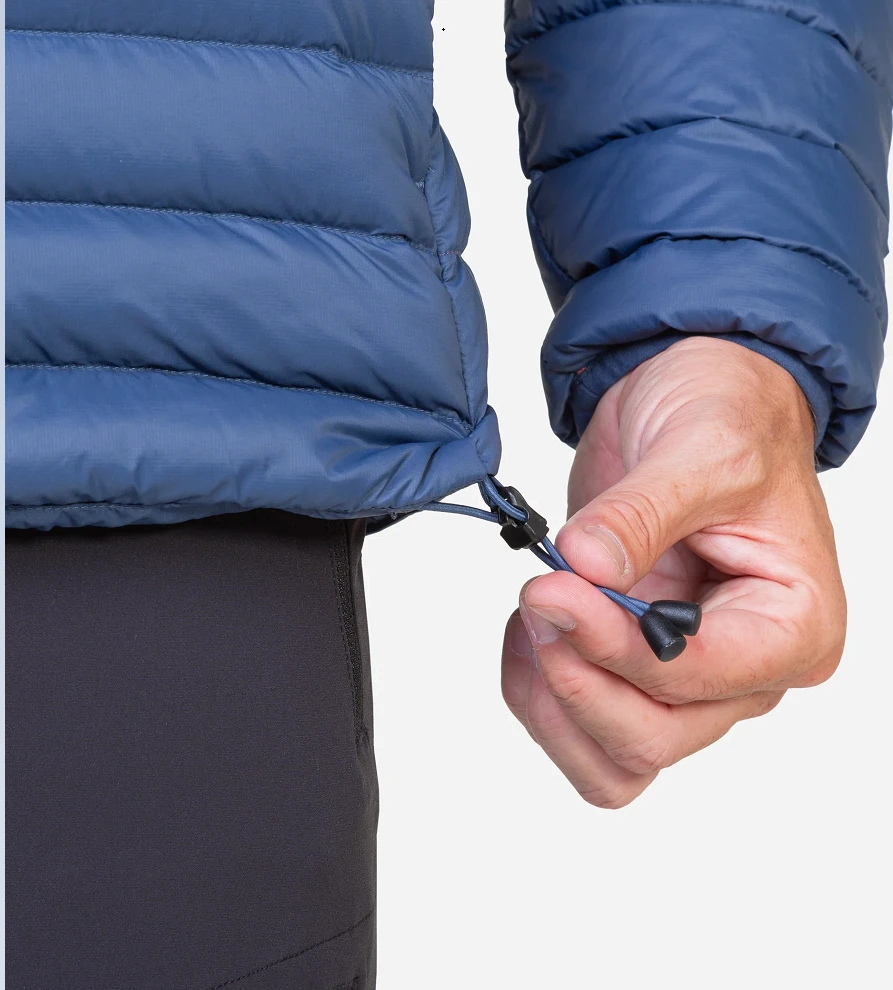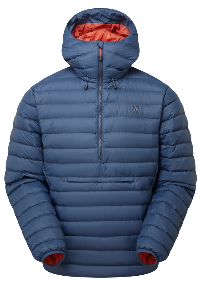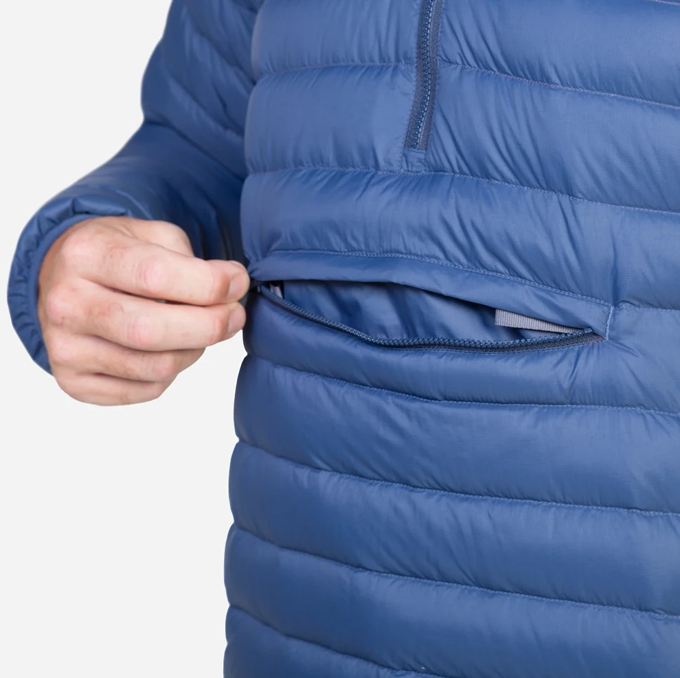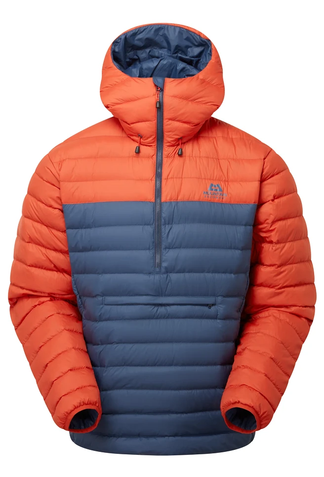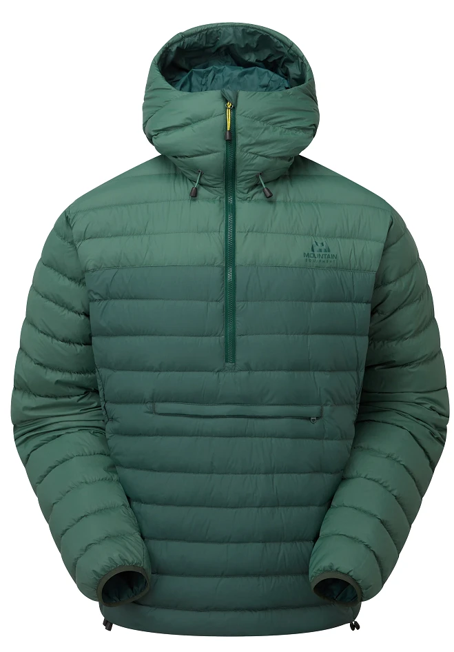 Mountain Equipment Earthrise Hooded Mens Pullover: 100% recyklovaný lehký pánský svetr. Jako izolace je v něm použité výlučně rekultivované husí a kachní peří. Vnější 100% recyklovaný svrchní materiál Earthrise 20D je lehký, nepropouští peří a je oštřen FC free v