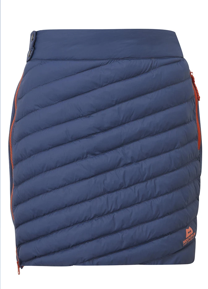 Mountain Equipment Earthrise Women's Skirt: Dámská zateplovací péřová sukně, ideální na skialpinismus a skitouring. Je ideálním společníkem během mrazivých a větrných dní, kdy ji často oblečeš ještě během stoupání na vrchol. Její povrch je vyrobený z vysoce odolné tkaniny, která je 100% recyklovaná. Výrazně tak eliminuje spotřebu nových materiálů a tvorbu odpadu. Díky voděodpudivé DWR úpravě ji můžeš dobře použít i jako vnější vrstvu a nemusíš mít obavy z mokrého sněhu ani mrholení.