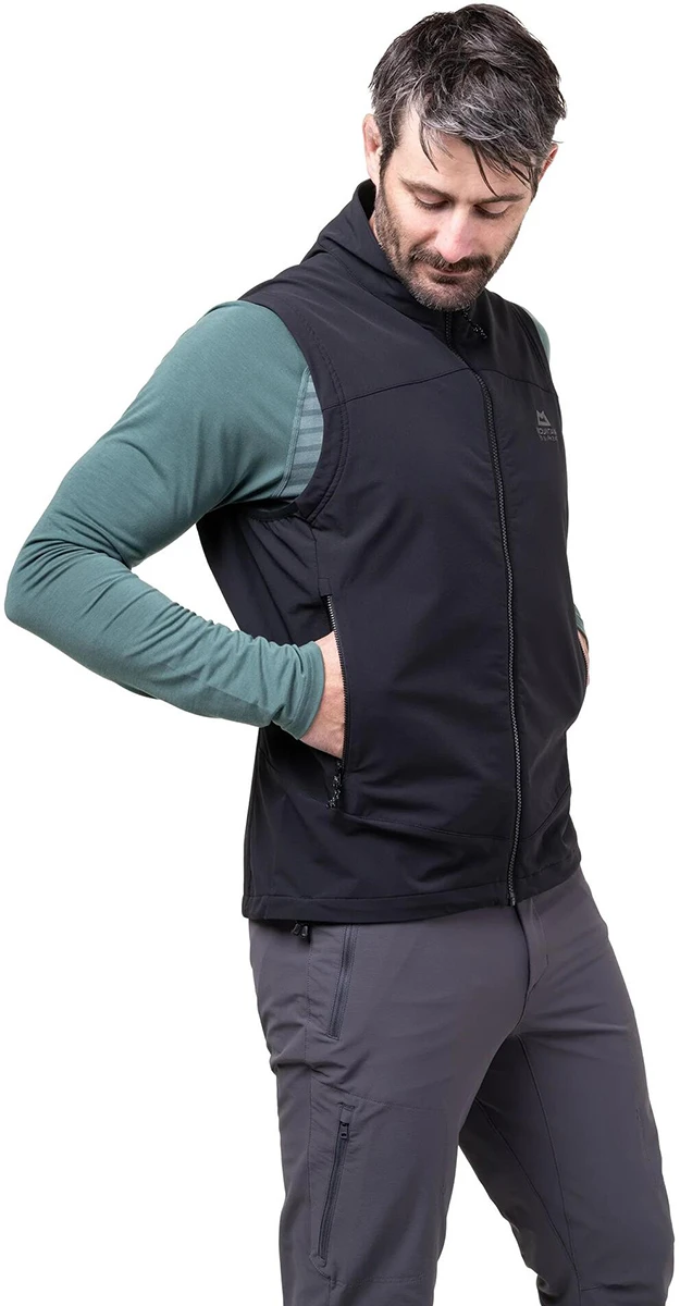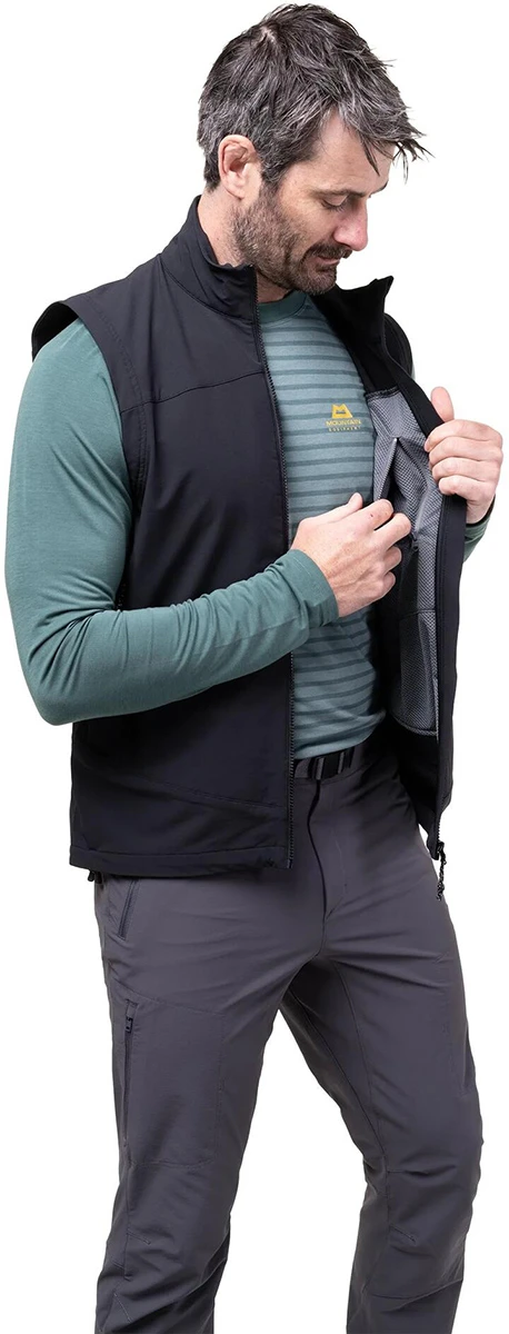 Mountain Equipment Frontier Mens Vest: je klasická vesta z vysoce prodyšného materiálu, kterou oceníte v počasí, kdy fouká. Rukávy máte volné pro pohyb a můžete si být jistí, že na tělo neprofouknete.