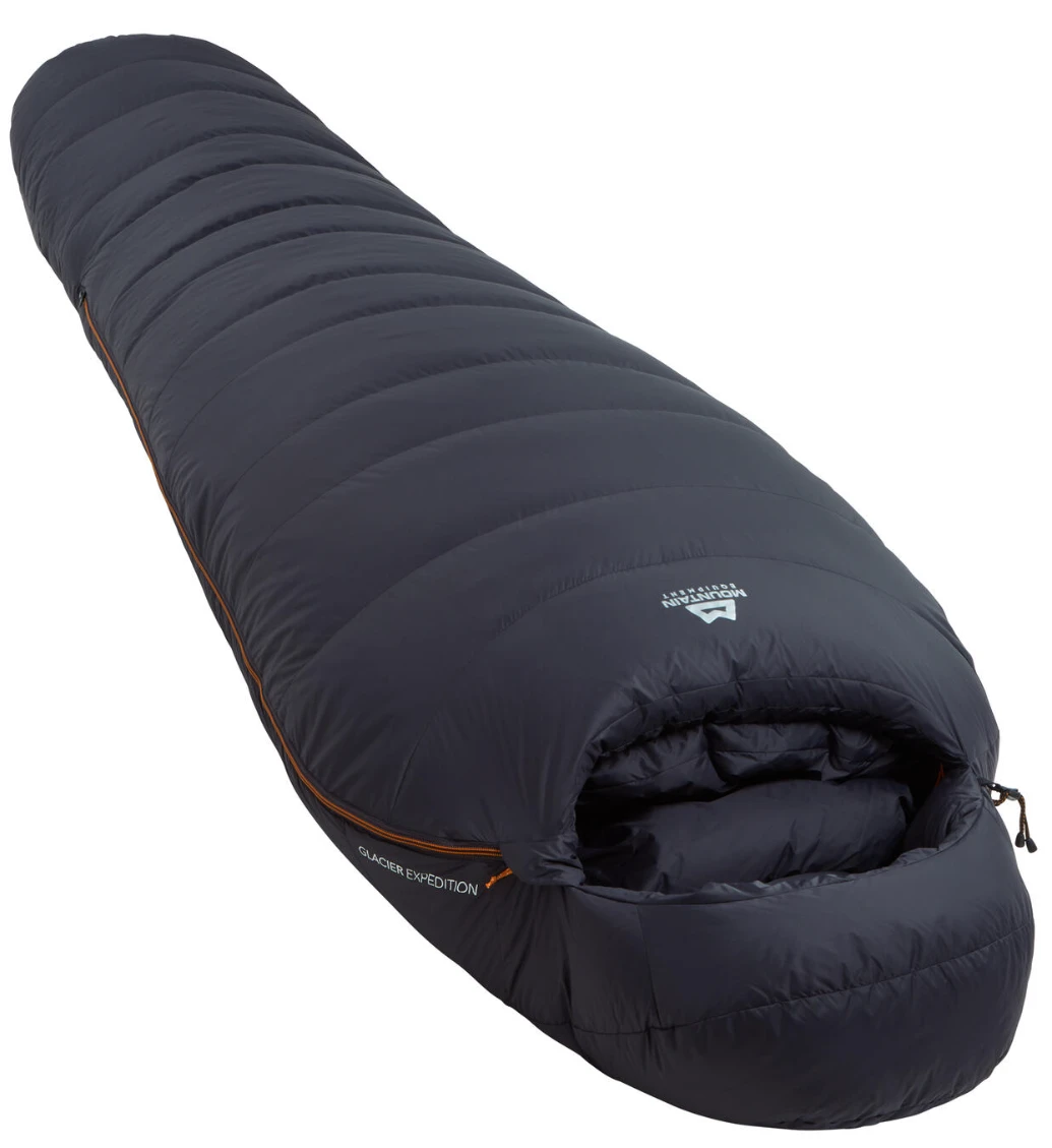 Mountain Equipment Glacier Expedition : je hodně teplý, expediční péřový spací pytel určený do velkých mrazů. Má váhu 1920 g má náplň 1326 g kachního peří s minimální plnivosti 700 cuins.