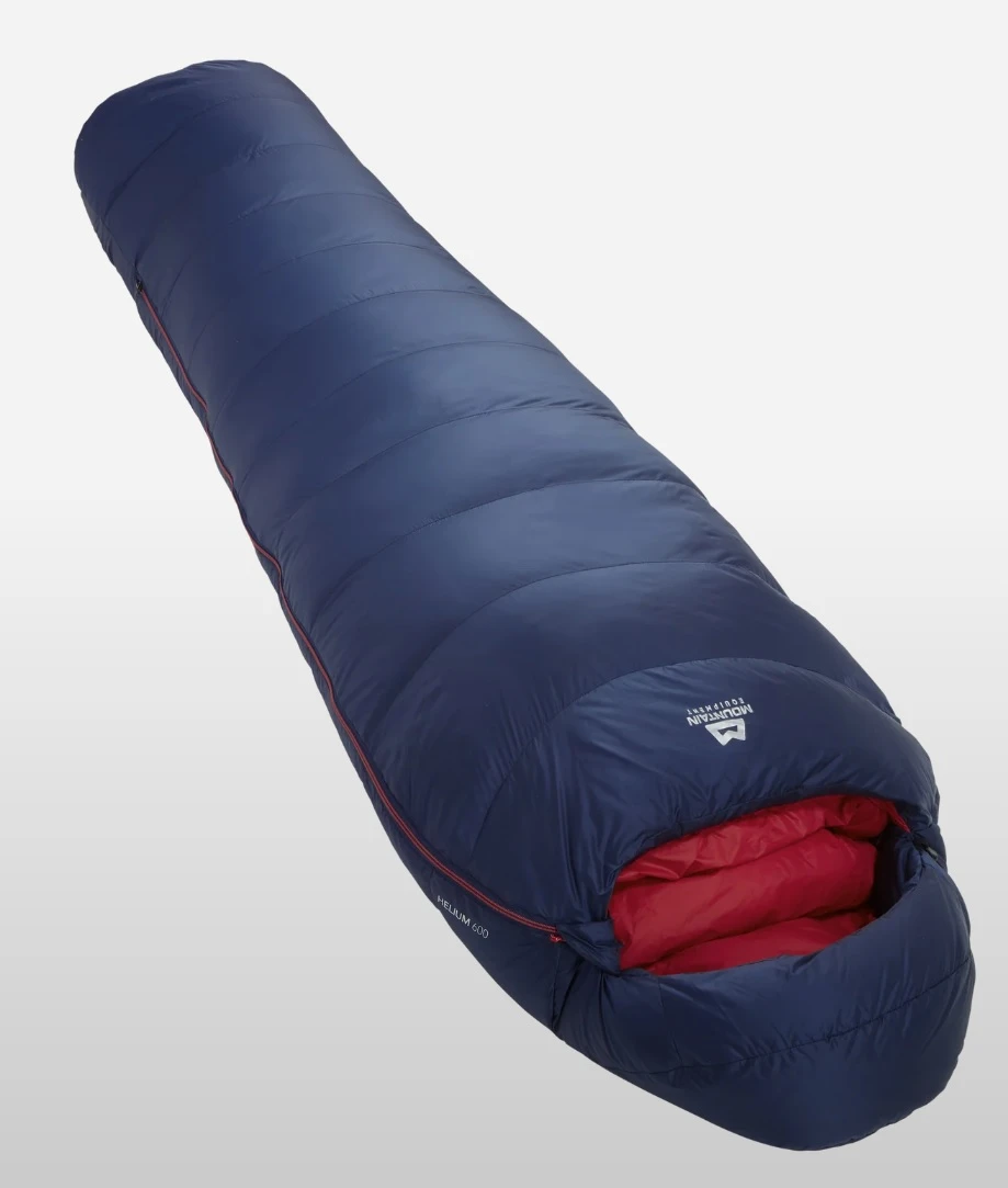 Mountain Equipment Helium 600 Women's: dámský téměř kilový spací pytel vyrobený s kritériem nízké váhy a výborné sbalitelnosti. Má váhu 950 g (Regular), s náplní 554 g kachního peří o minimální plnivosti 700. Vnější materiál je Helium 20D, to velmi lehký materiál s překvapivě dobrou otěruvzdorností. Má DWR úpravu.