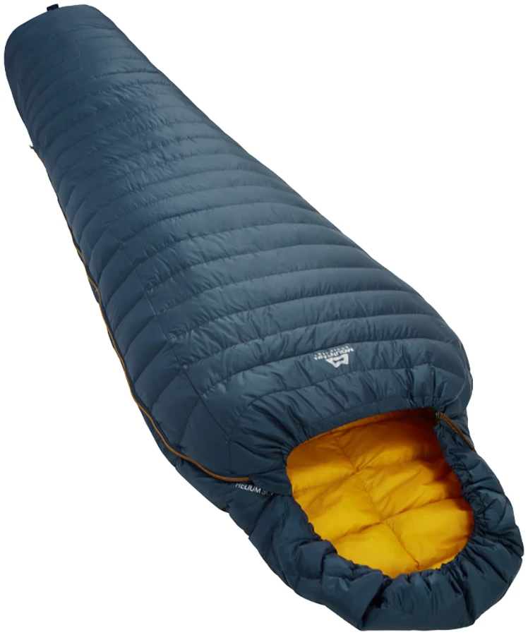 Mountain Equipment Helium 250: je extrémně lehký a dobře sbalitelný péřový spací pytel s váhou pouze 420 g. Hodí se pro letní cestování nalehko, cyklistiku, turistiku. Hodí se hlavně pro zkušené cestovatele, kteří již vědí co chtějí a i kupují. U tak lehkého spacáku již hraje roli vlhkost, vaše únava, kondice, vítr atd.