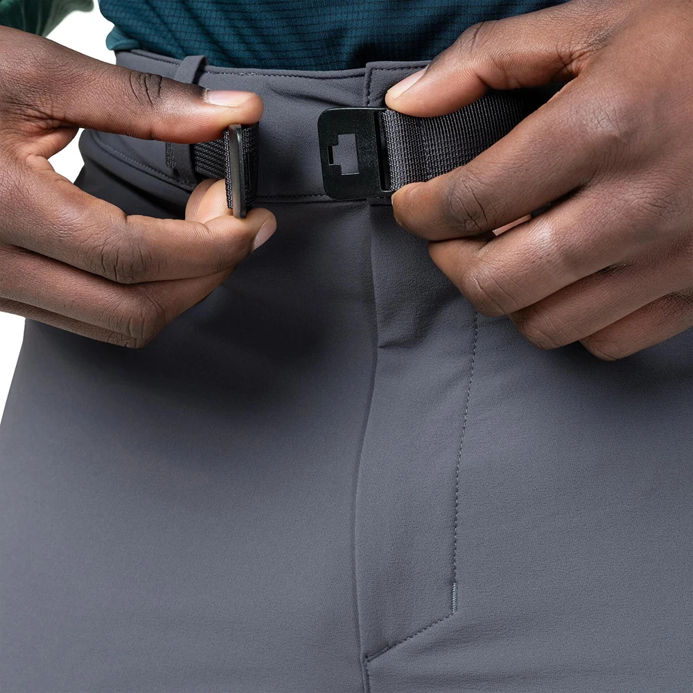 - Dvě postranní kapsy na zip na stehnech mají zevnitř síťovinu a slouží i jako větrací otvory během náročného výstupu.