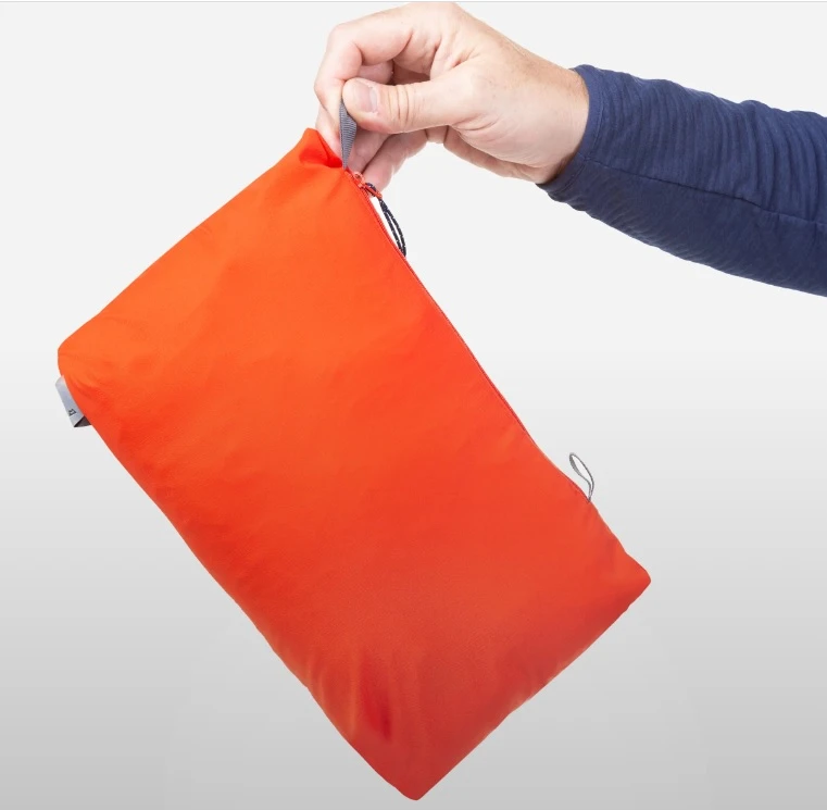- Sbalitelná do vlastní kapsy a pomocí dvou poutek ji připneš karabinou na sedák.