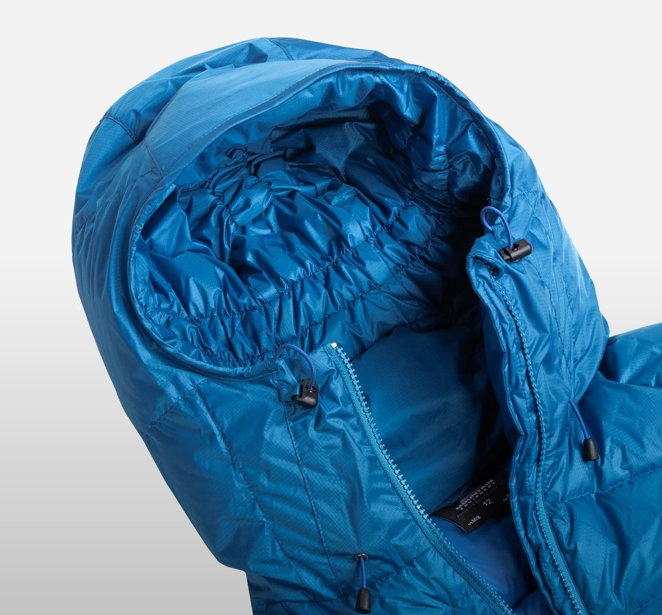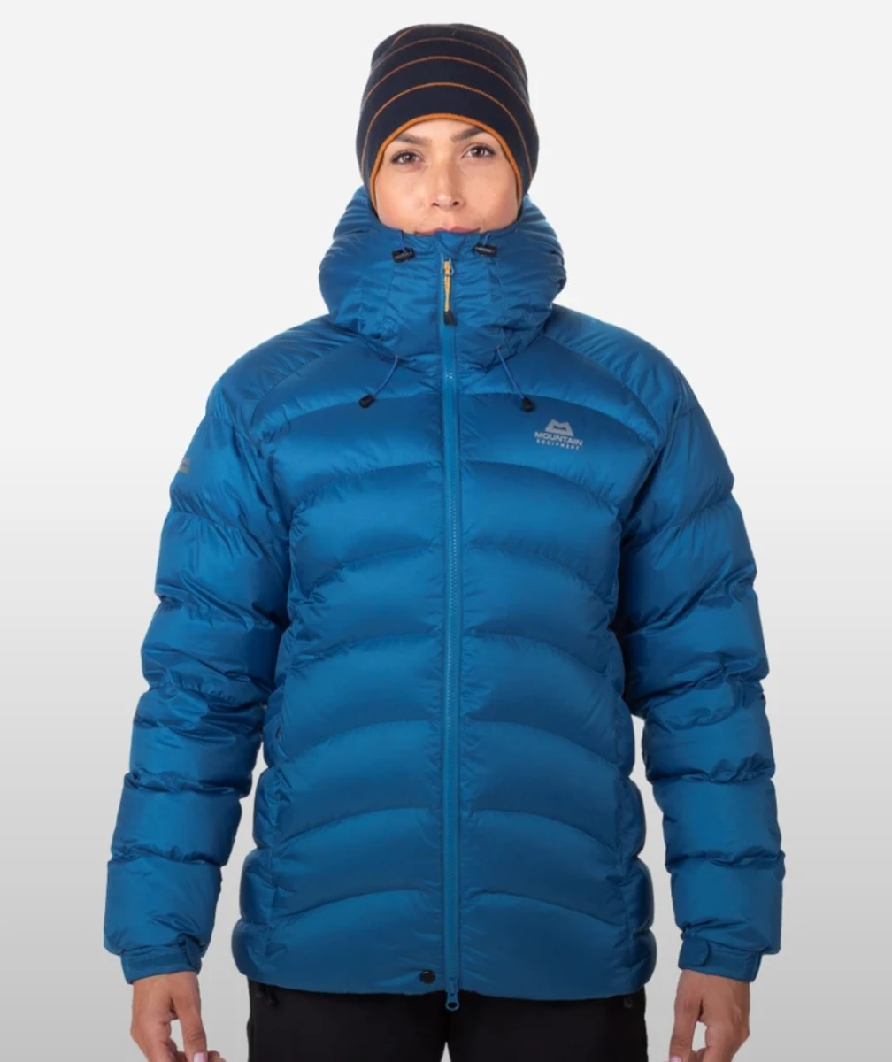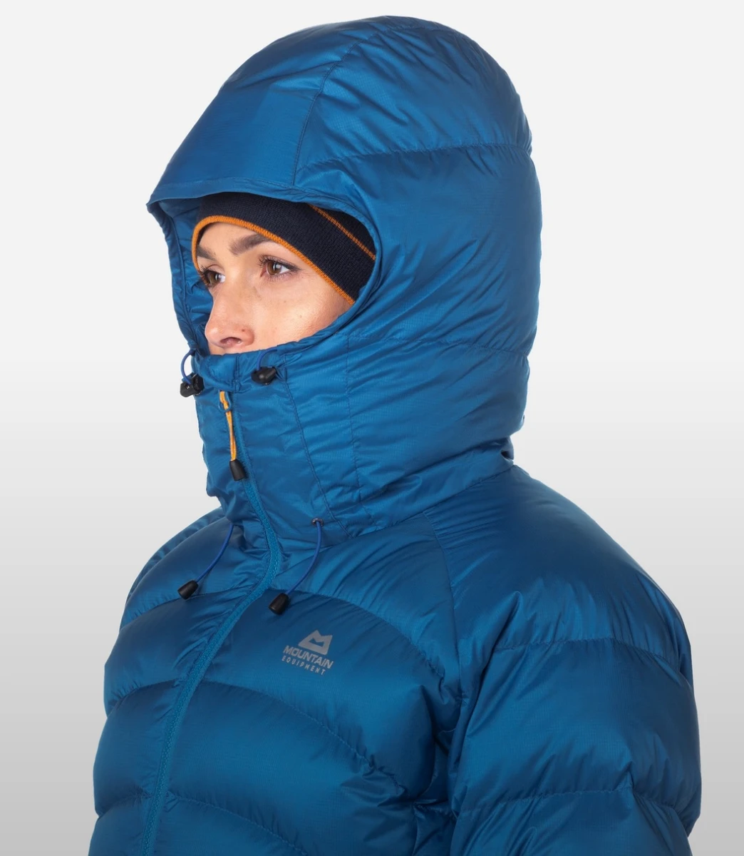 Péřová bunda ženského střihu Mountain Equipment Womens Sigma : je určená pro horolezectví a alpinismus, ale i všude tam, kde vám je velká zima. Je vyrobena z voděodolného materiálu Drilite Loft 30D, ten zároveň výborně odolává větru. Má 201 g husího peří s plnivostí 800 cuin. Má váhu 580 g a dostatečně tepelně izoluje i v teplotách pod bodem mrazu, bez problémů v ní přečkáte zimy i okolo -15°C.