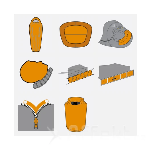 U spacáku je výborně vyřešen límec, tak aby neunikalo teplo. Kapuce je ergonomická a má 5 komor. Lichoběžníková konstrukce komor, které udržují peří tam, kde má být. V oblasti nohou jsou 4 trapézové komory, které zajistí maximální izolaci nohám a menší kompresi. Zip je dvoucestný a je po celé délce spacího pytle.