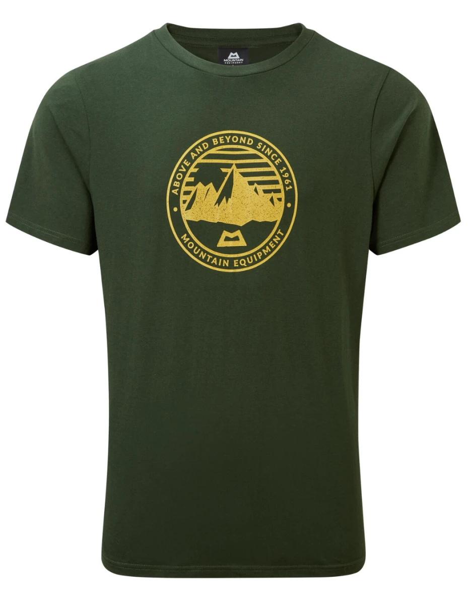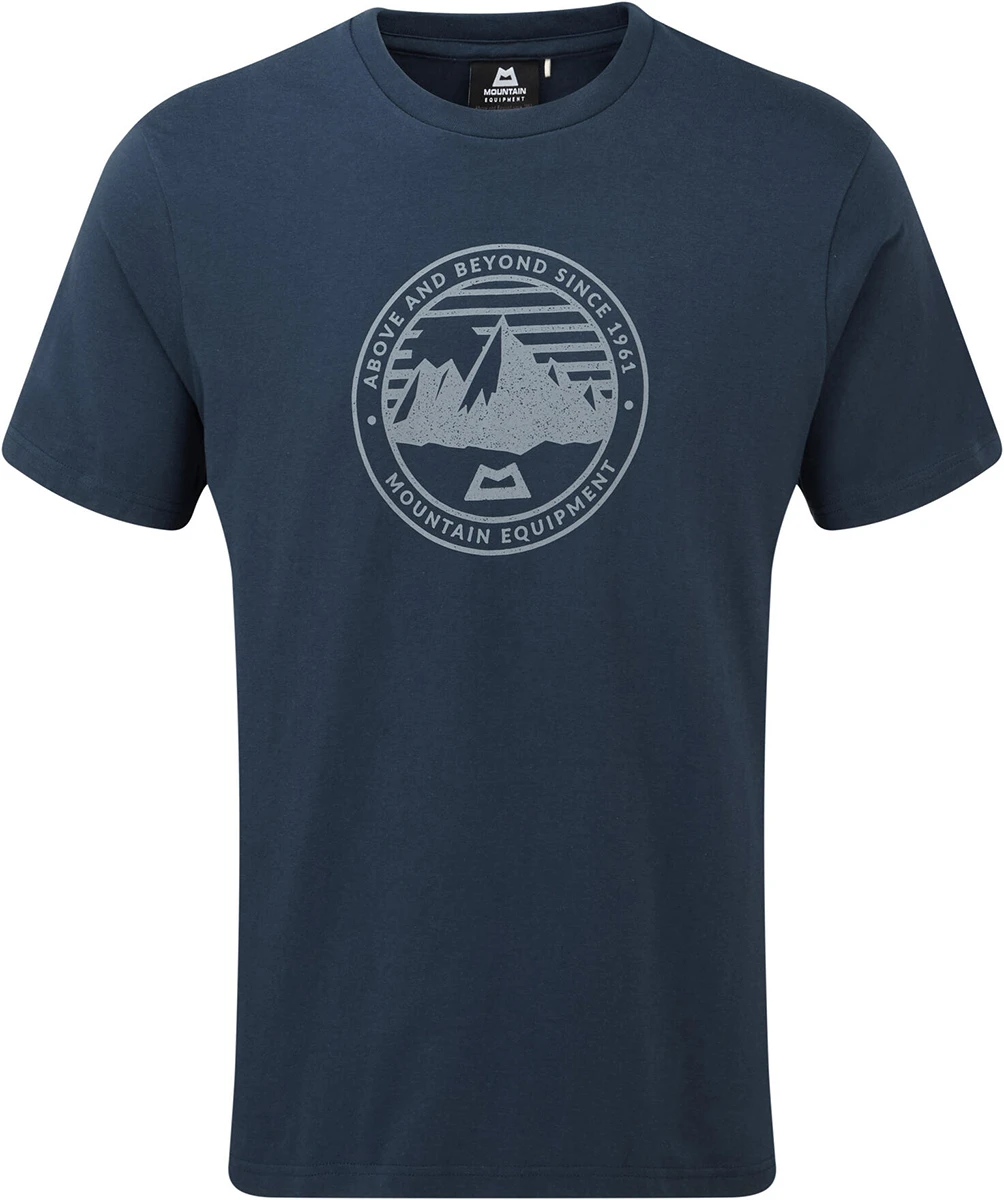 Mountain Equipment Roundel T-shirt Mens: klasické volnočasové pánské tričko s krátkým rukávem z úpletu ze 100% organické bavlny. Na hrudi má exluzivní potisk s horskou tématikou.