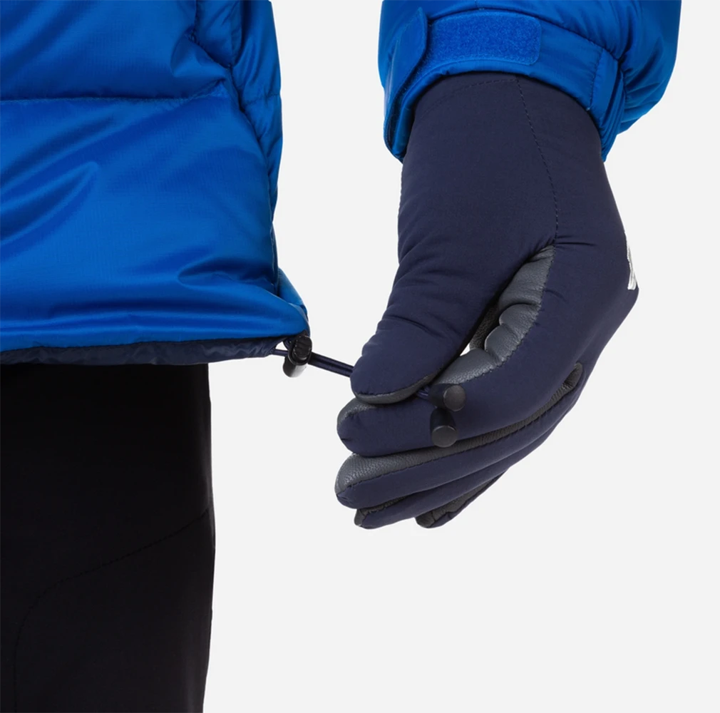 - Nastavitelný spodní lem bundy pomocí stahovacích tkaniček. Samostatná šňůrka pro stahování přední a zadní části, aby nehrozilo zachycení do karabiny, když si ji připínáš na materiálové oko sedacího úvazku.