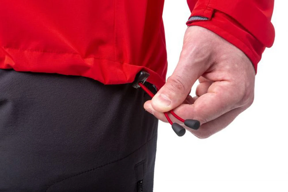 Tato pánská nepromokavá bunda je vyrobena z třívrstvého laminátu 40 D, který znamená dobrou odolnost proti poškození. Do kapuce se vejde i lezecká přilba. V rámci své kategorie, odolných nepromokavých bund si zachovává dobrou hmotnost. Kapsy jsou posazené výš pro využití se sedákem, má odvětrávání v podpaží.