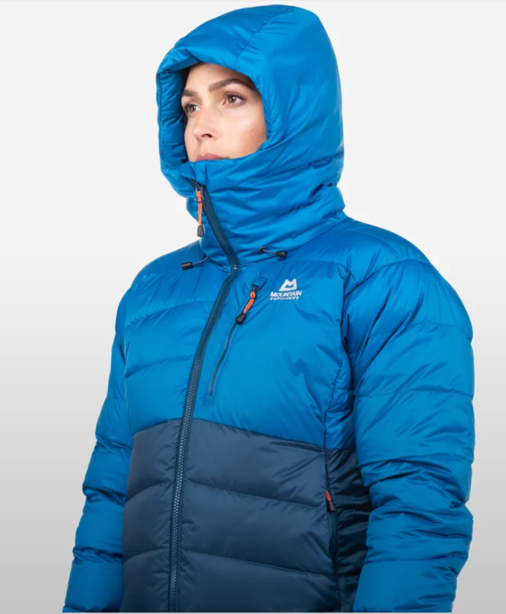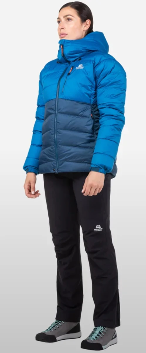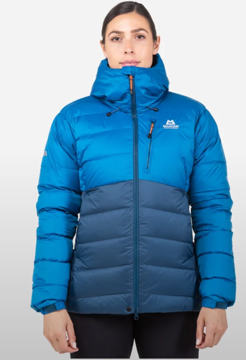 Mountain Equipment Trango Women's Jacket: Moderní dámská zimní bunda z husího a kachního peří. Bunda je vhodná především na náročné zimní expedice. Hodí se nejen na vysokohorskou turistiku, ale také na skialpinismus, lyžování nebo lezení po ledovcích.