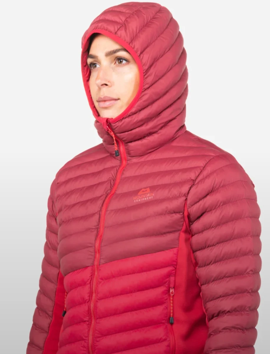 Mountain Equipment Women's Particle Hooded Jacket: Dámská zateplovací bunda pro aktivní pohyb v chladném počasí. Můžete ji nosit jako lehkou vnější, nebo velmi teplou střední vrstvu. Nabízí skvělý poměr tepelné izolace k hmotnosti při výjimečně malém objemu. Zabere vám tak v batohu minimum místa. Všestranná hybridní bunda se svrchním materiálem s vodoodpudivou DWR úpravou a syntetickým izolačním materiálem.