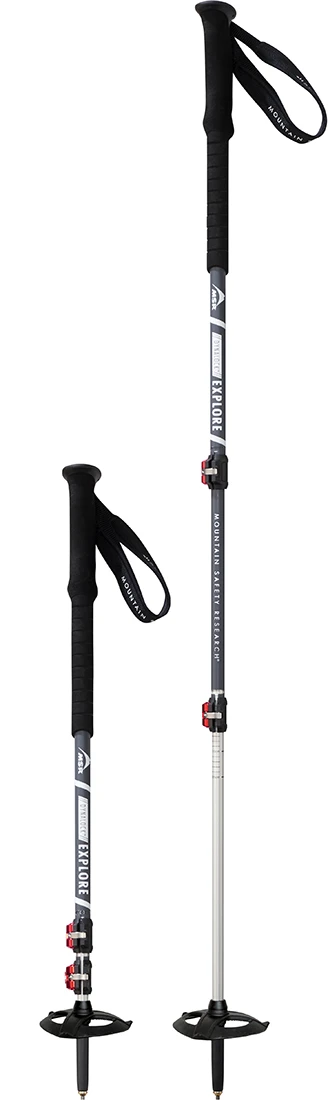 MSR DynaLock Explore: jsou ideální pro turistiku nebo pro chůzi na sněžnicích. Skládají se pomocí rychloupínáků, jdou ovládat i v rukavicích. Mají nastavitelnou délku až do 140 cm.