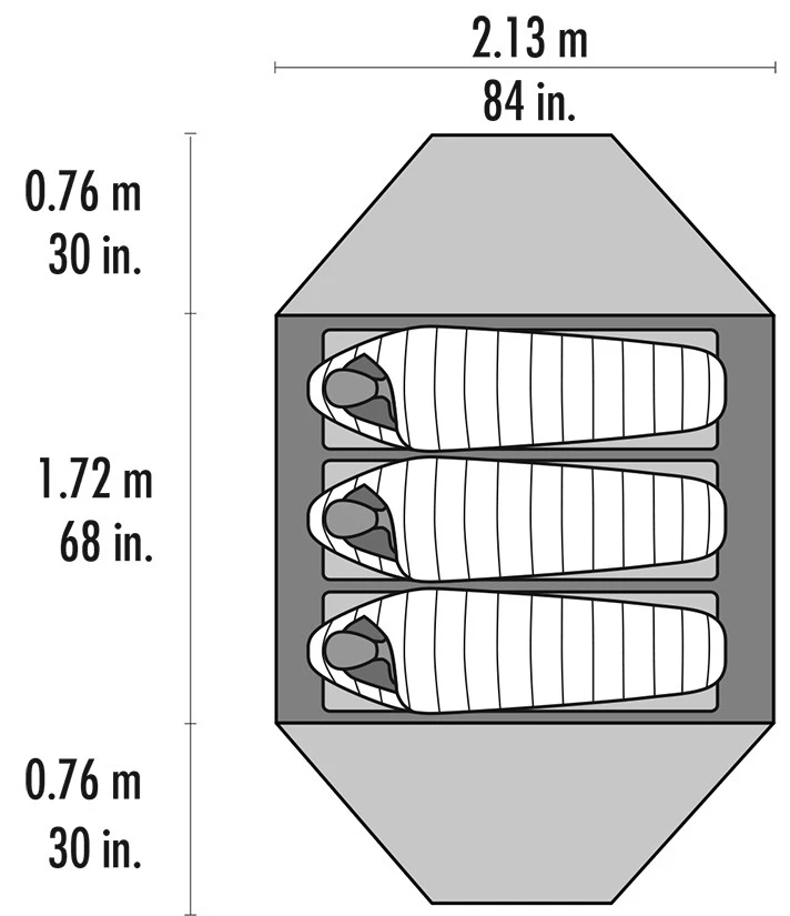 MSR Elixir 3: je univerzální, ale také velmi lehký outdoorový stan pro 3 osoby. Je vhodný třísezónní využití. Konstrukce má 4 křížení 3 tyček, díky tomu je stabilní i ve větrném počasí. Všechny detaily jako jsou očka, švy, poutka jsou precizně zpracované. Konstrukce umožňuje využít maximum prostoru, protože stan má kolmé stěny.