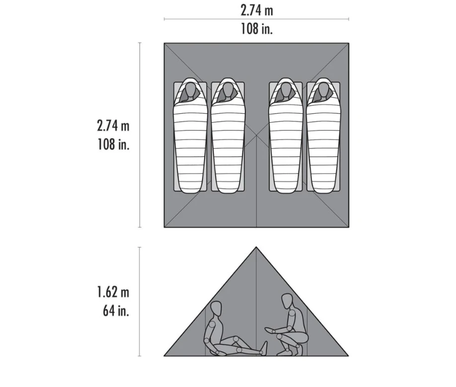 Kuželovitý tvar přístřešku zabraňuje srážení vlhkosti a zvyšuje ventilaci. Přístřešek je určen pro 4 osoby v teplém počasí.