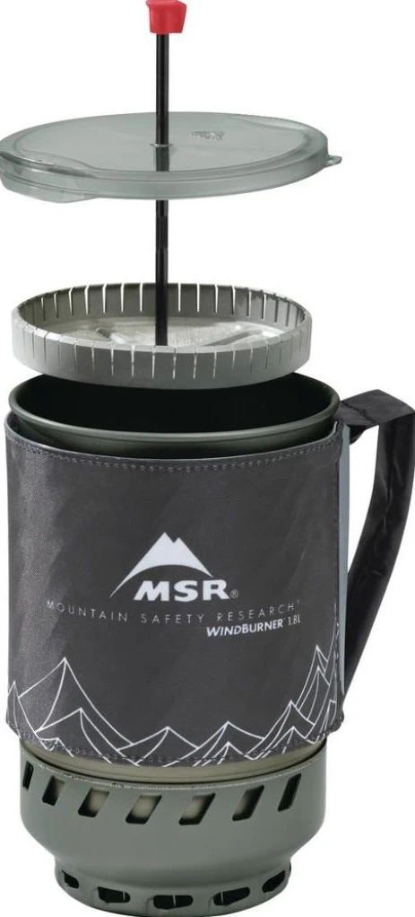 MSR WindBurner Coffee Press Kits: Cestovatelský ruční presovač vhodný pro vařiče firmy MSR řady WindBurner. K dostání je ve dvou velikostech 1 litr a 1,8 litrů. Uvnitř najdete síto vyrobené z odolné nerezové oceli, které je dostatečně jemné a velmi snadno se čistí. Síto má po obvodu pružné obvodové těsnění. Najdete zde také šroubovací držadlo.