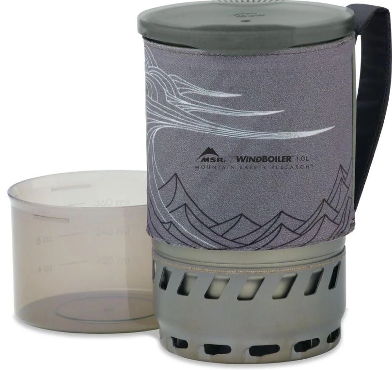 MSR WindBurner Personal Accessory Pot: Turistický vařič od firmy MSR ze série WindBurner. Hrnec má objem 1 litr, který je dostatečný pro 1 až 2 osoby. Na spodní straně nádoby najdete tepelný výměník, který efektivně přenáší teplo, a tím zkracuje dobu vaření, a navíc šetří spotřebovaný plyn.