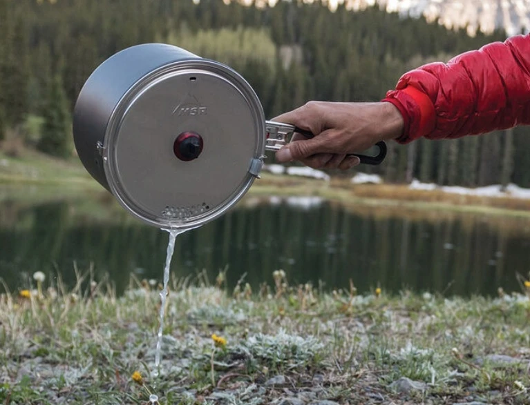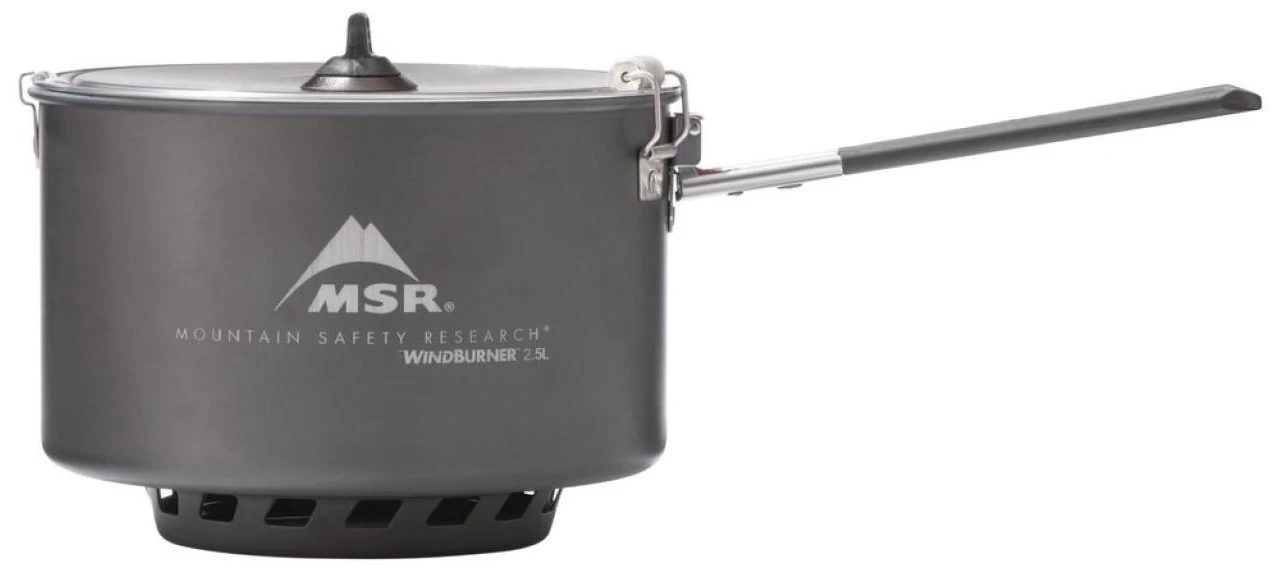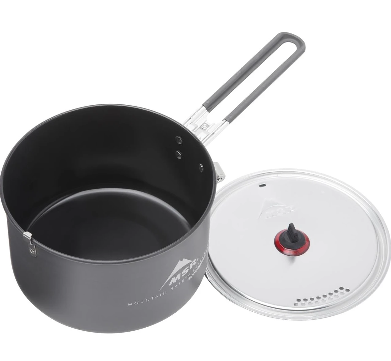 MSR WindBurner Sauce Pot: Hrnec s integrovaným tepelným výměníkem vhodný na kempování, turistiku, nebo cestování v autě. Objem hrnce je 2,5 l, což je dostačující na uvaření jídla pro 2-4 osoby. Vaření je navíc snadné a pohodlné díky keramickému nepřilnavému povrchu, odnímatelné skládací rukojeti a pokličce, která je uchycena na dvou stranách a umožňuje tak snadné scezení.