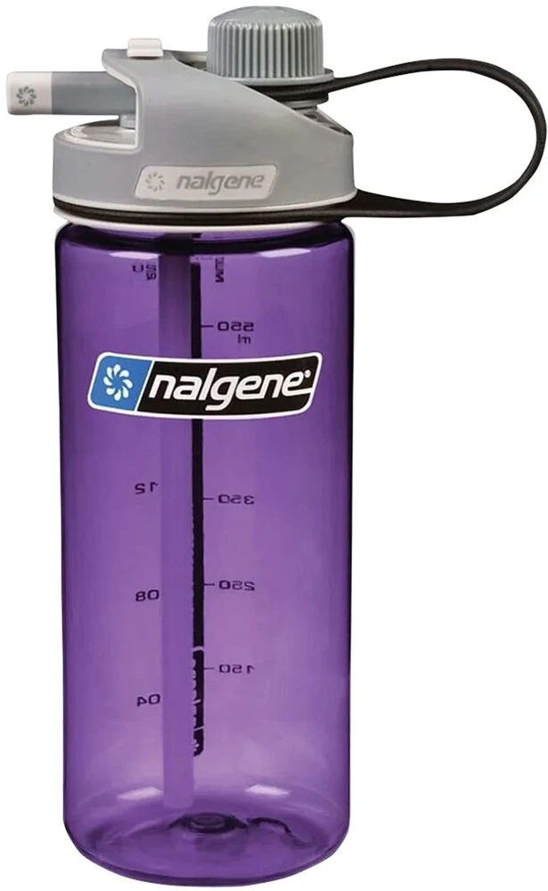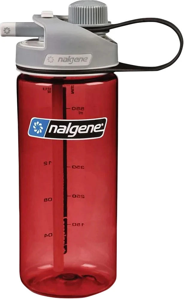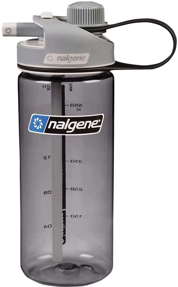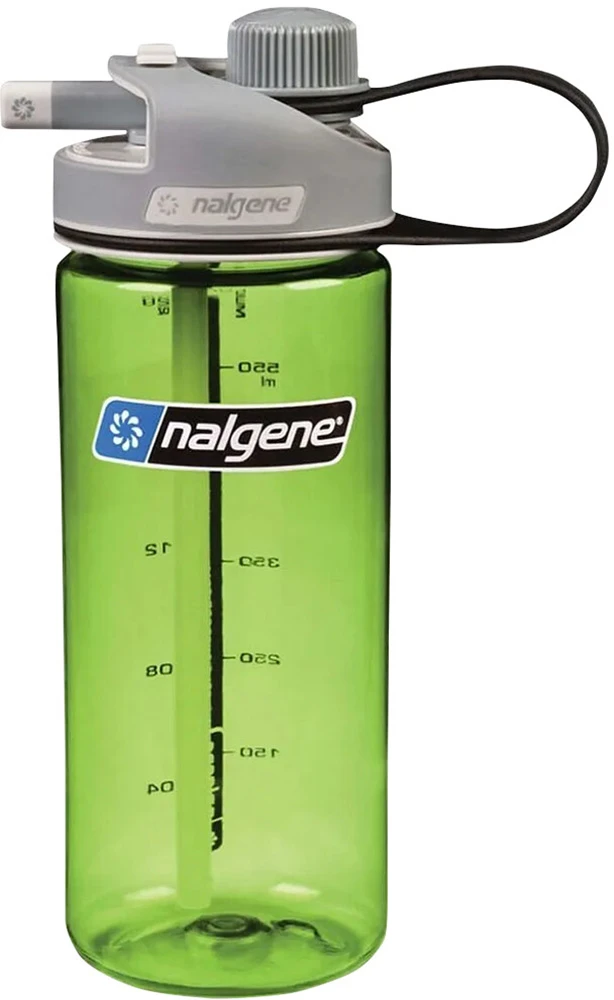 Nalgene Multidrink Sustain: láhev o objemu 600 ml vyrobená z recyklovaného plastu. Pít se dá dvěma způsoby, buď uzávěrem o průměru 28 mm, nebo brčkem které lze snadno vyklopit.