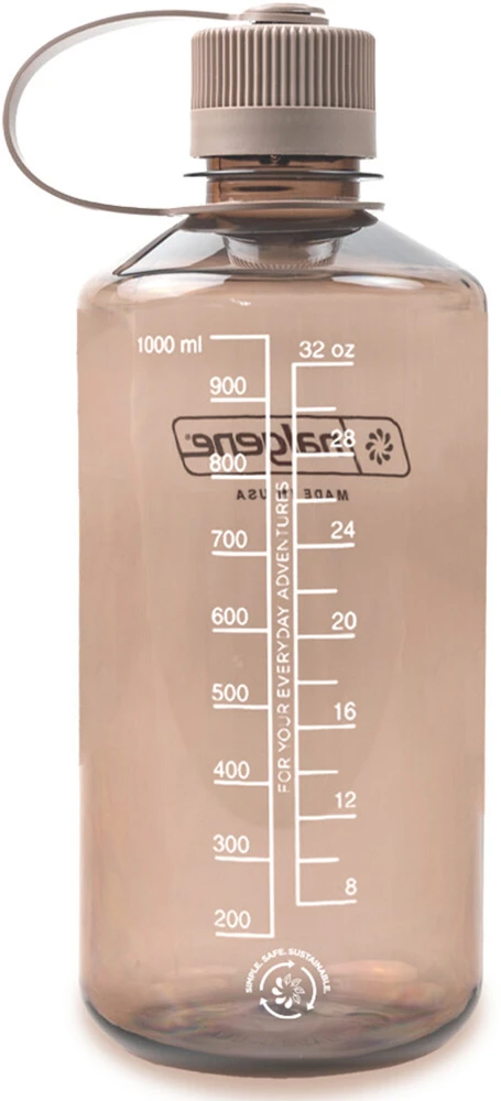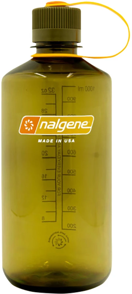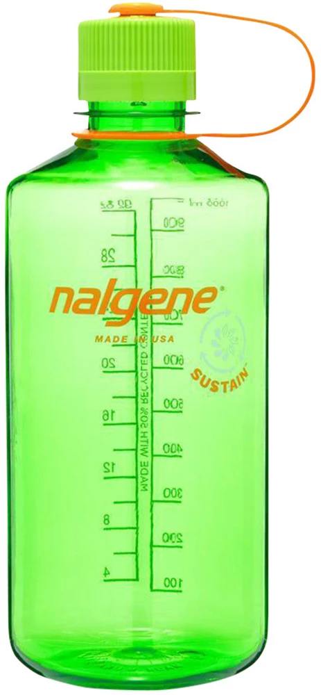 Nalgene Narrow Mouth Sustain 1000 ml: velmi odolná láhem o objemu 1 l s úzkým hrdlem. Šroubovací uzávěr je pevně přichycen k láhvi, takže nehrozí jeho ztracení.