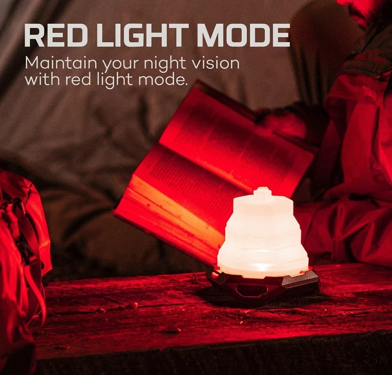 Teplé bílé světlo efektivně osvětlí jakýkoli prostor, zatímco možnost červeného světla pomáhá zachovat noční vidění za špatných světelných podmínek.