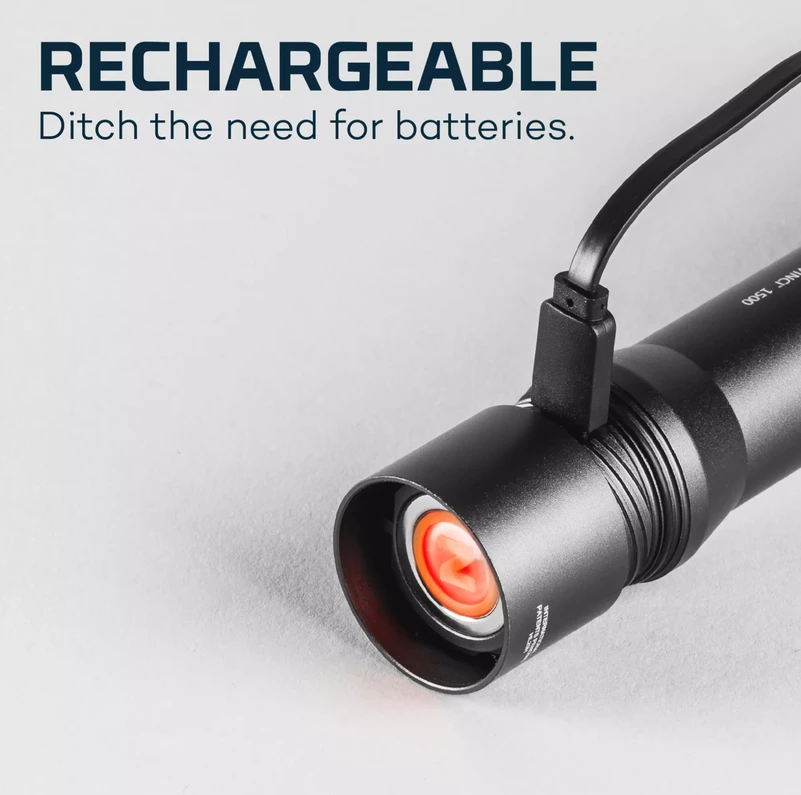 NEBO Newton1500: je výkonná ruční svítilna se 4 světelnými režimy. Přiložený volič režimů usnadňuje přepínání mezi režimy a výkonná LED v této baterce může rozsvítit 182 metrů. Přiložená baterie umožňuje mezi nabíjeními až 20 hodin provozu.