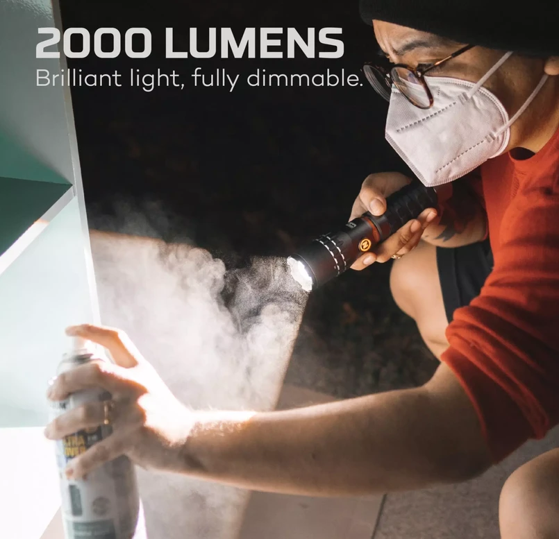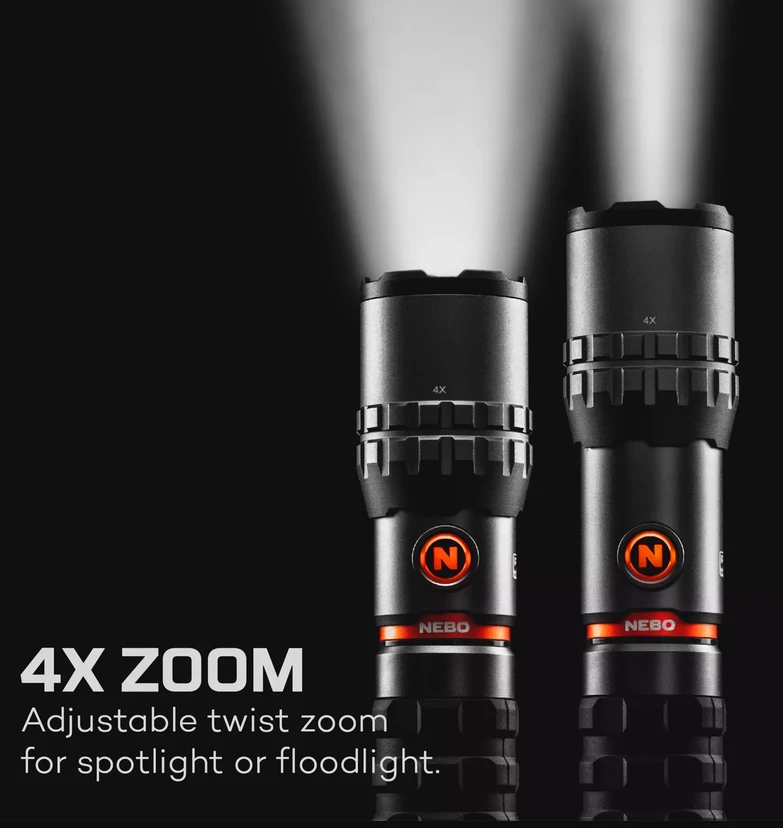 NEBO Slyde King 2K 2000: je nabíjecí, vodotěsná (IP67) a extrémně všestranná svítilna. Je vybavena 2 lumenovou svítilnou se 4násobným zoomem a 500 lumenem C • O • B. Každý světelný režim je stmívatelný s programovatelnou pamětí.