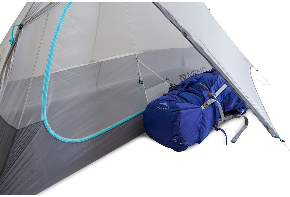Nemo Equipment Hornet Elite OSMO 2P: ultralehký stan pro dvě osoby o váze pouhých 779 g. Je velmi dobře sbalitelný. Díky speciálním upínacím klipům Flybar™ je vnitřní výška 94 cm, takže se zde pohodlně převléknete nebo sbalíte věci. Uvnitř stanu je dostatek kapes pro uložení věcí. Vchod vnitřního stanu je z neprůhledné síťoviny, která poskytuje dostatek soukromí a funguje také jako moskytiéra.