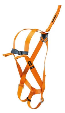Vyznačuje se velmi jednoduchým způsobem oblékání. Obsahuje zadní kovový D-kroužek a přední textilní navazovací bod pro splňující normu EN 361 pro připnutí. Jedna univerzální velikost pro všechny postavy.