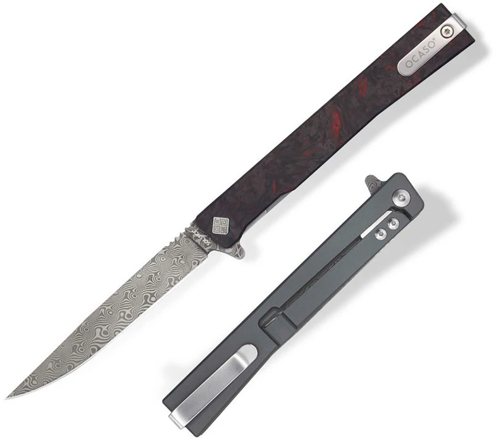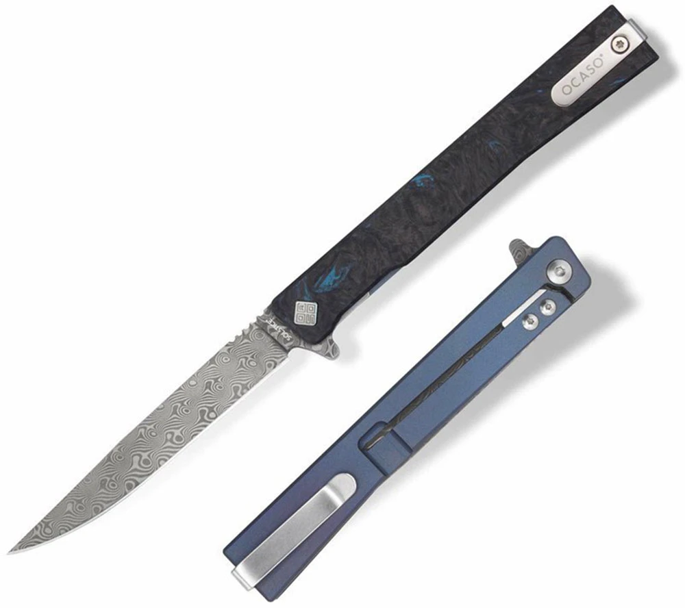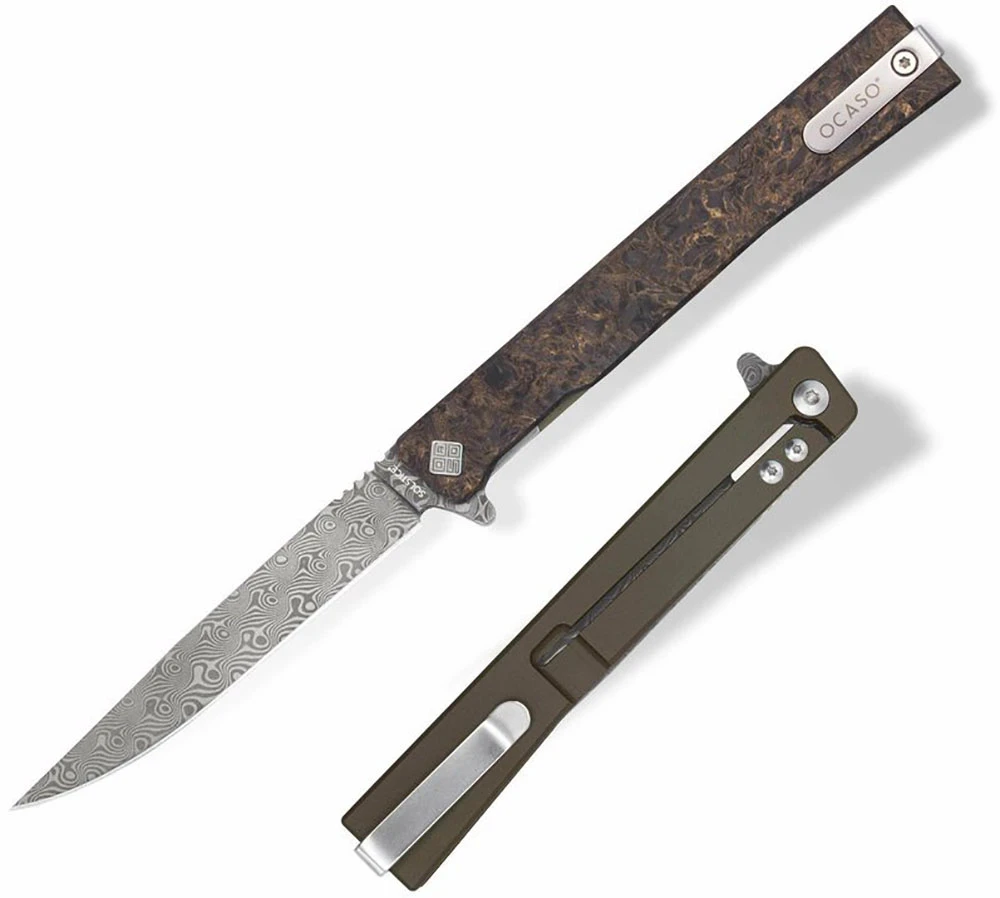 Ocaso Solstice Damascus: elegantní nůž pro manažery s čepelí z ušlechtilé damaškové oceli, která zaujme svým jedinečným vzorem. Nůž je velmi lehký, ocelová spona umožní aby nůž zapadl hlouběji do kapsy košile či saka a byl tak méně nápadný.