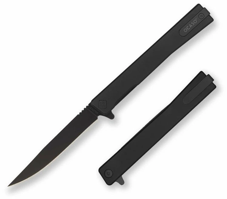 Ocaso Solstice Titanium + Black / Straight: velmi lehký a tenký zavírací nůž který zaujme svým elegantním vzhledem. Ocelová spona umožní aby nůž zapadl hlouběji do kapsy a byl méně nápadný, můžete ho tak nosit v kapse košile či saka hned vedle psacího pera.