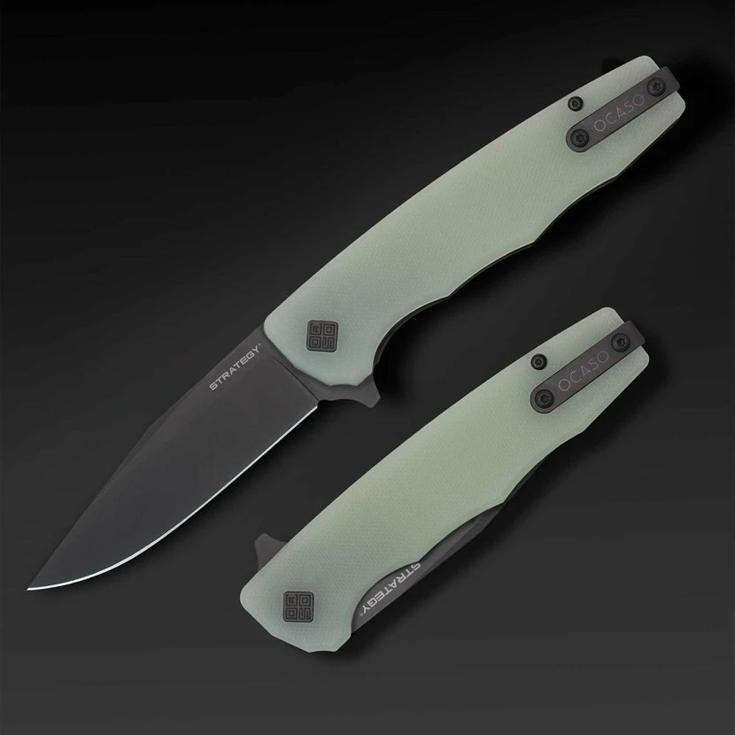 Ocaso Strategy Jade G-10 & Black PVD: lehký zavírací EDC nůž který můžete vzít jak do kanceláře tak do přírody. Je ergonomický, dobře se drží a snadno ovládá. Ocelová spona umožní aby nůž zapadl hlouběji do kapsy a byl tak méně nápadný.