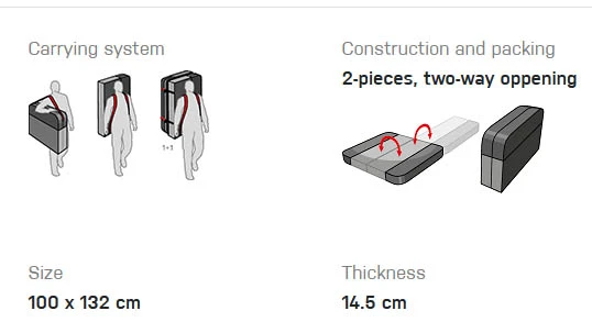 Velikost : otevřená (2 způsoby)- 132×100×14,5 cm, 200×66×14,5 cm