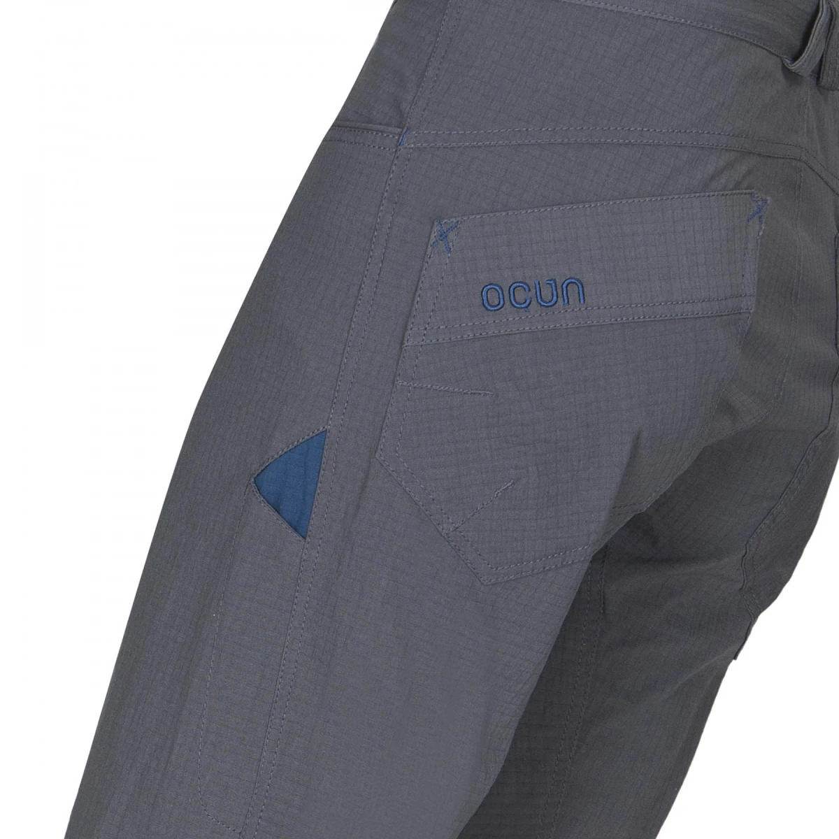 Ocún Eternal: pánské sportovní kalhoty navržené pro lezce. Jsou vyrobené z bavlny, nylonu a spandexu. Kalhoty jsou pružné, prodyšné a velmi odolné. Mají vpředu snížený pas a popruh s přezkou pro regulaci. Protože jsou to lezecké kalhoty, mají kapsu na kartáček v levé části. A na mobil vpravé. Kalhoty Ocún Eternal vám umožní neomezený pohyb.
