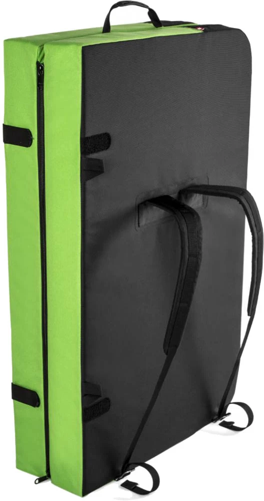 Proto je výhodná zejména pro lezení traverzů, kde získáte 200 cm bezpečné plochy pro hladký odskok. Má výborný poměr cena/výkon. Umožňuje paralelní zapojení více crashpadů. Součástí je i kobereček pro očištění zašpiněných lezaček.