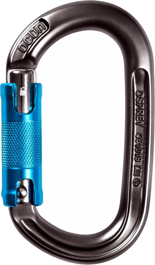 Ocún Osprey Triple: karabina z hliníkové slitiny oválného tvaru určená pro výškové práce i horolezectví. Třípolohová pojistka zajišťuje automatické zavření a 100% jistotu, že se nechtěně neotevře.